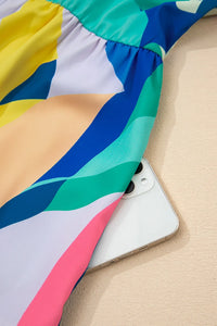 Abstract Print Cap Sleeve Pocketed Mini Dress