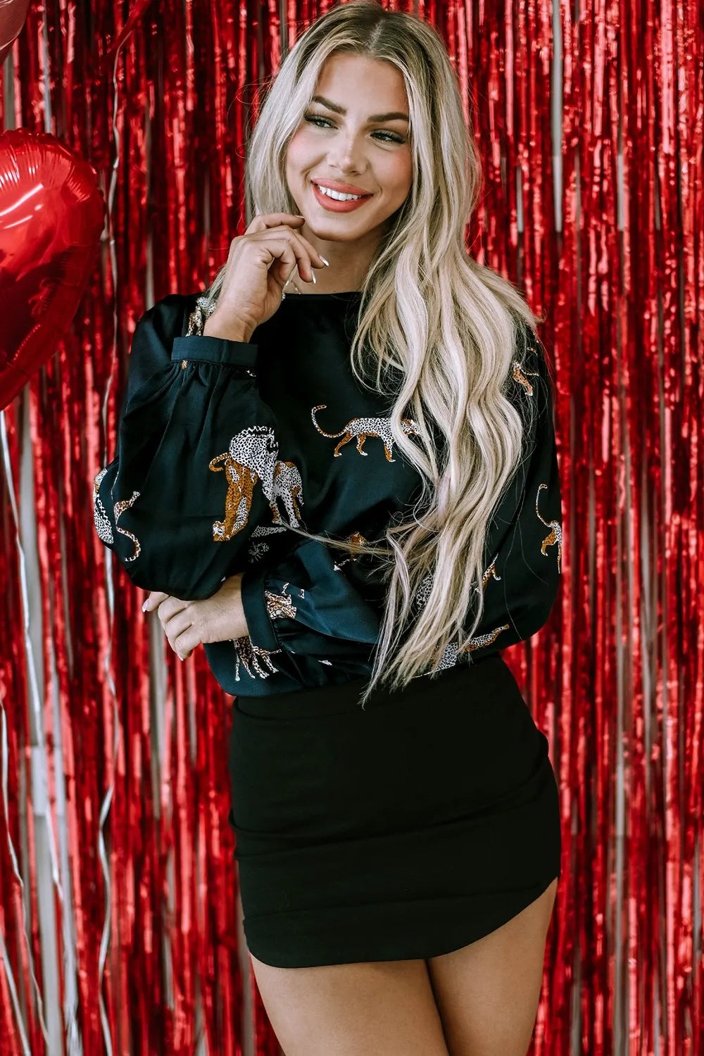 Animal Pattern Round Neck Long Sleeve Blouse