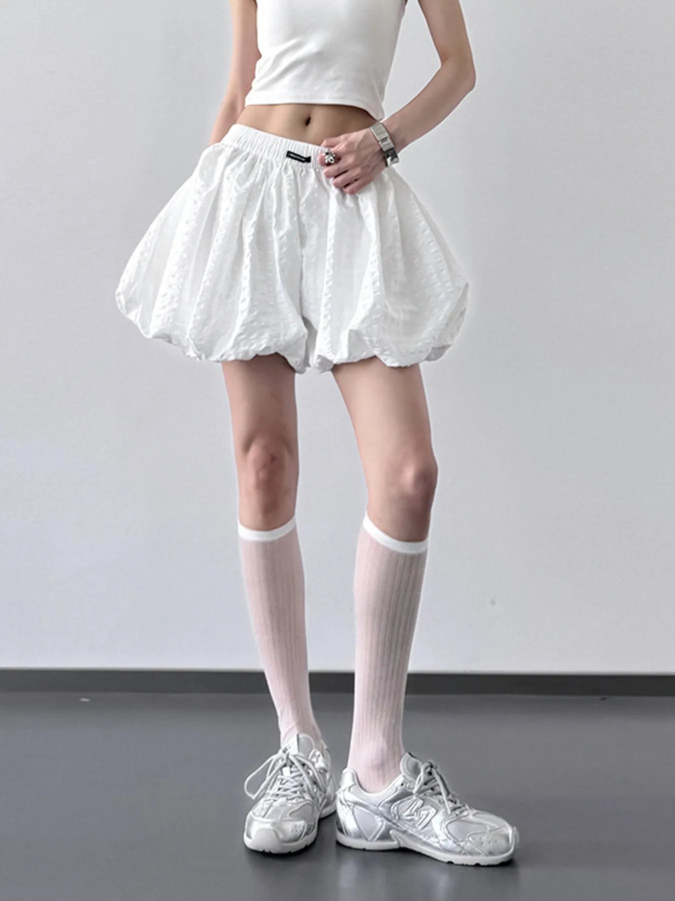 Bubble Hem Elastic Waist Shorts