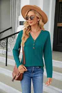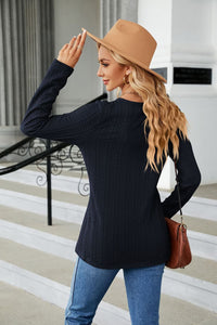 Cable-Knit Long Sleeve V-Neck T-Shirt