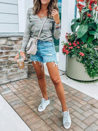 Camouflage V-Neck Long Sleeve T-Shirt