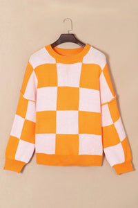 Checkered Exposed Seam Drooped Shoulder Sweater