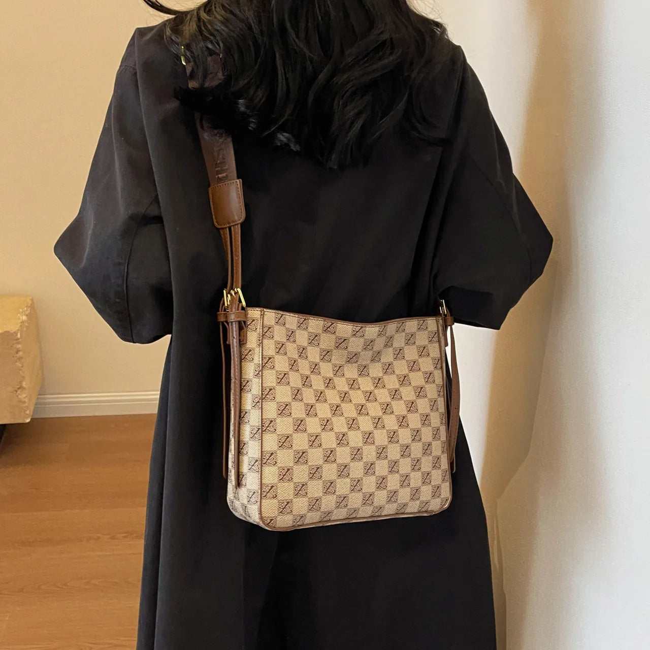 Checkered Pattern Shoulder Bag with Adjustable Strap