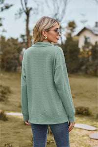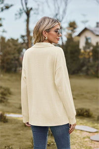 Collared Neck Cable-Knit Long Sleeve Blouse