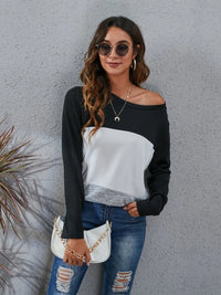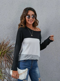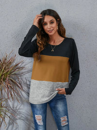 Color Block Round Neck Long Sleeve T-Shirt