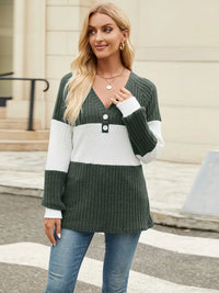 Color Block V-Neck Long Sleeve T-Shirt