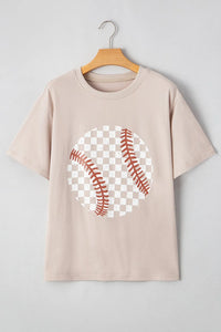 Contrast Checkered Baseball Graphic Round Neck Short Sleeve T-Shirt