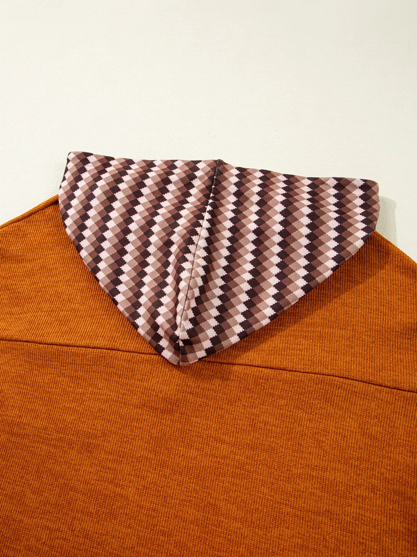 Contrast Plaid Hood Patchwork Chest Pocket Henley Top
