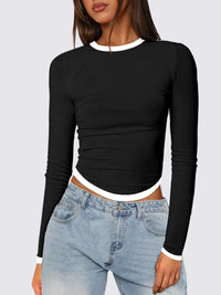 Contrast Trim Round Neck Long Sleeve T-Shirt