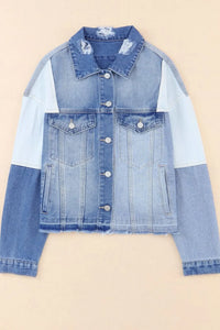 Distressed Button Up Drop Shoulder Denim Jacket