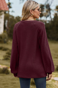 Eyelet Notched Raglan Sleeve T-Shirt