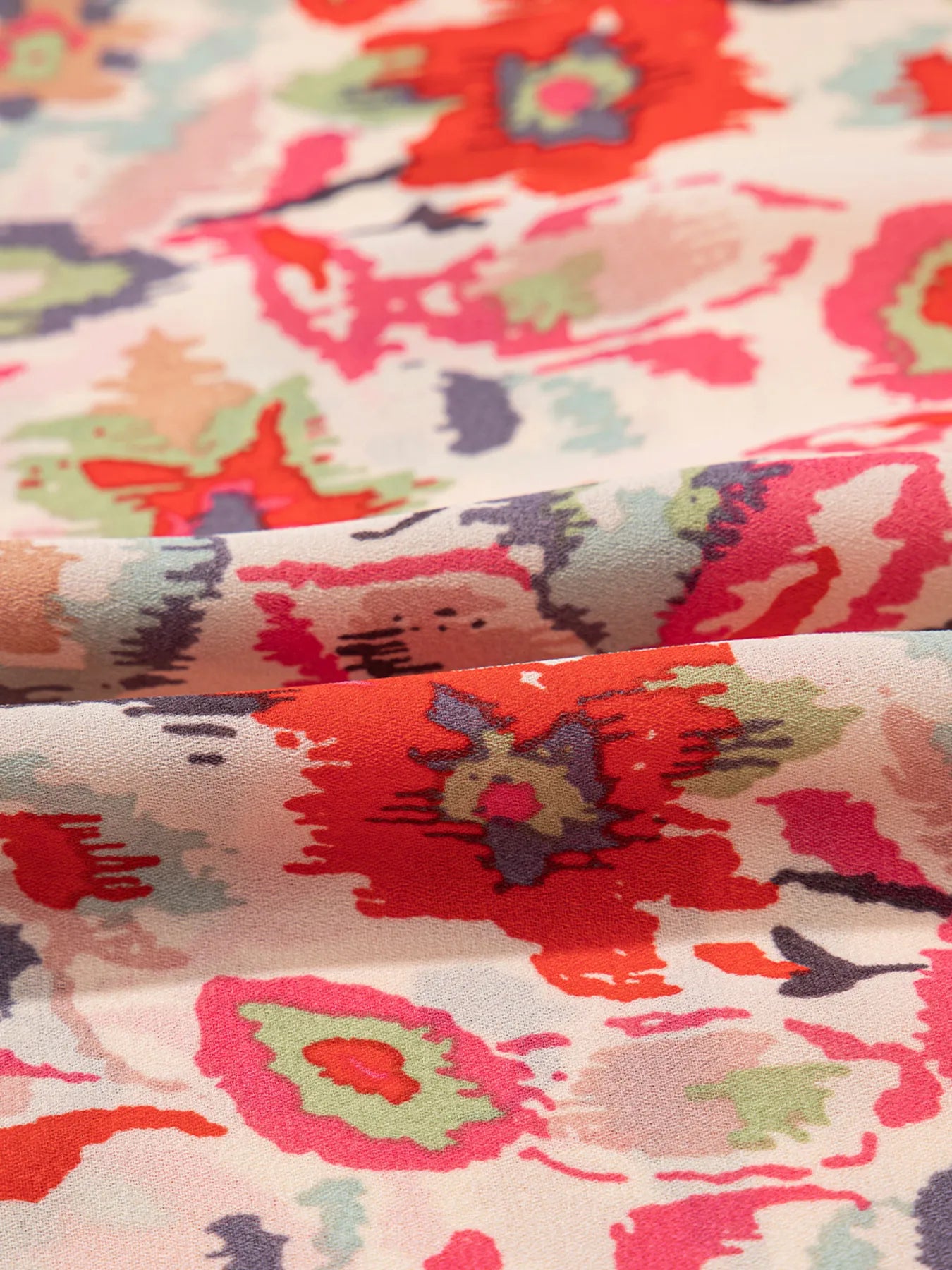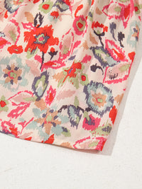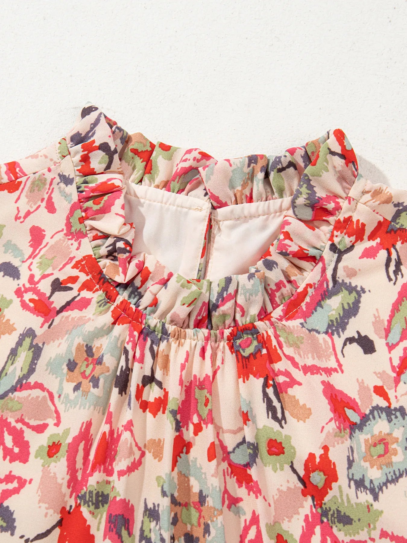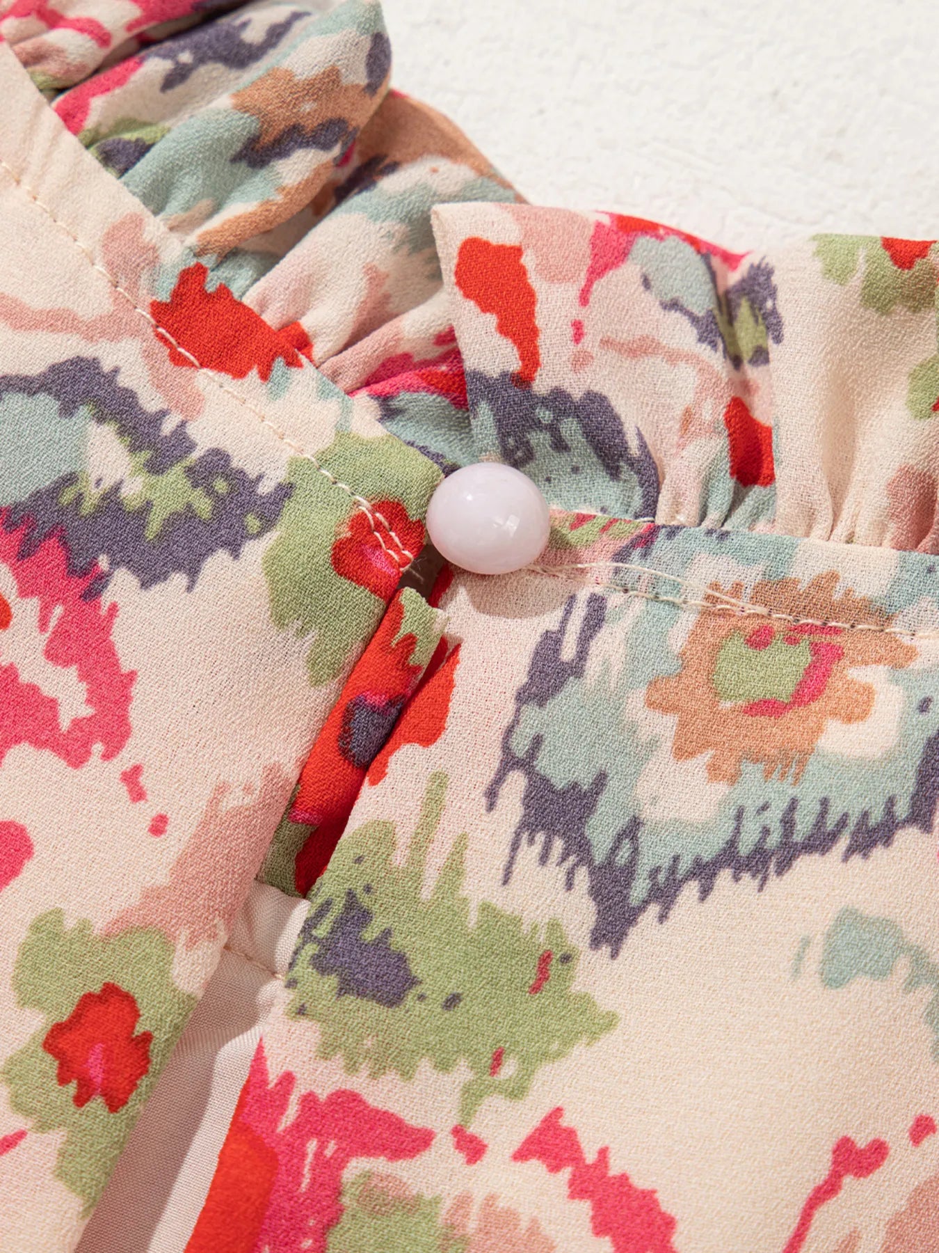 Floral Print Frilled Neck Puff Sleeve High Waist Dress