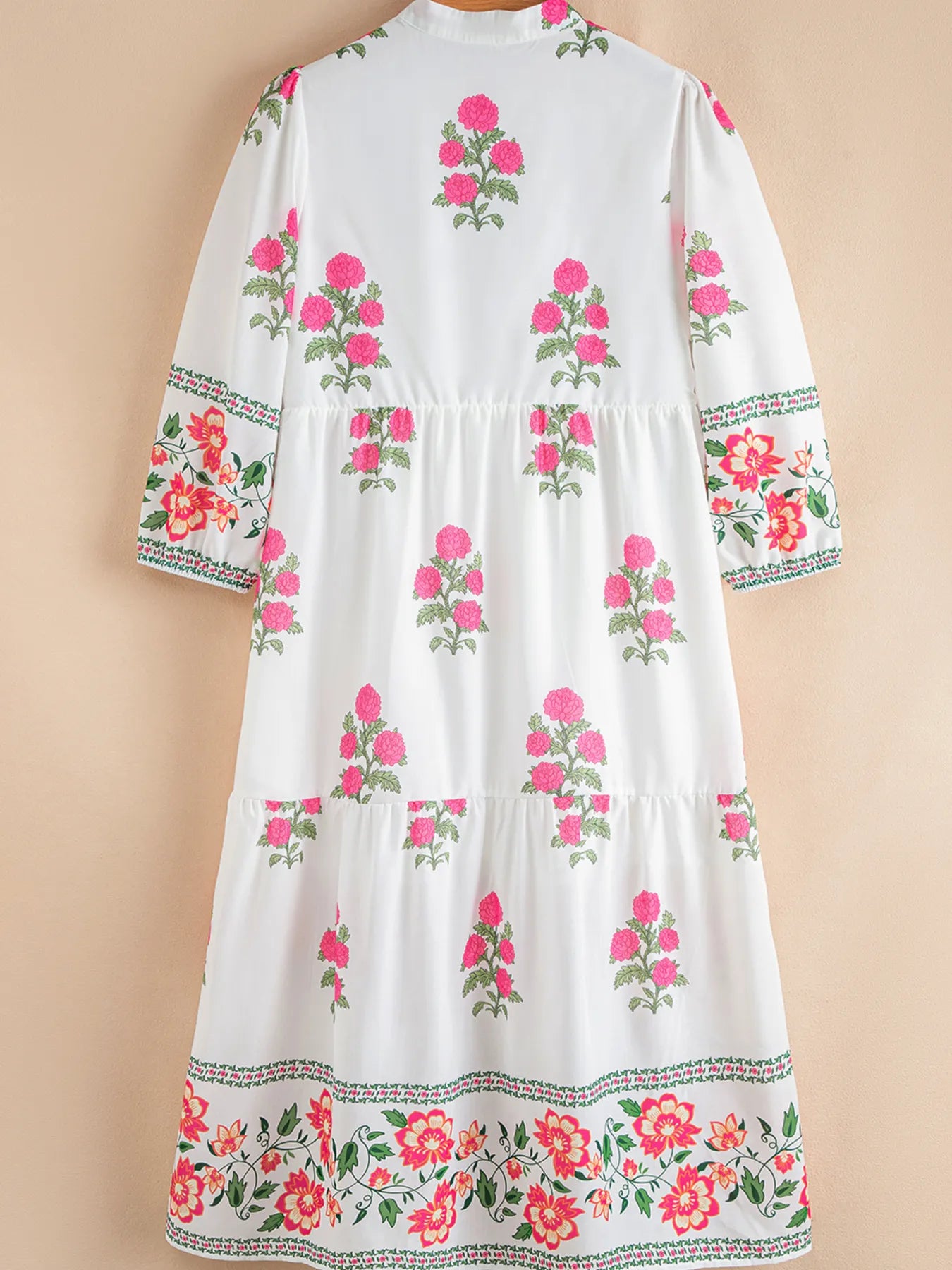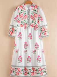 Floral Print Half Button Mandarin Neck 3/4 Sleeve Maxi Dress