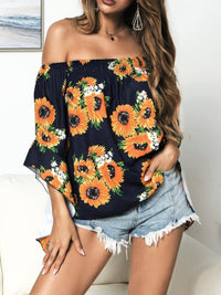 Floral Print Off-Shoulder Flounce Sleeve Blouse