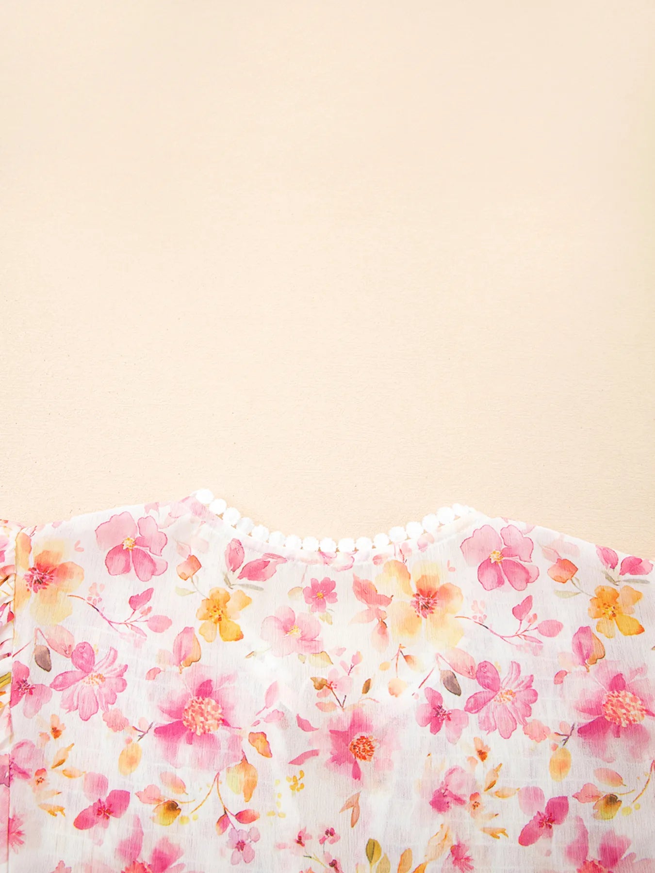 Floral Print Tassel Tie Smocked Puff Sleeve Blouse