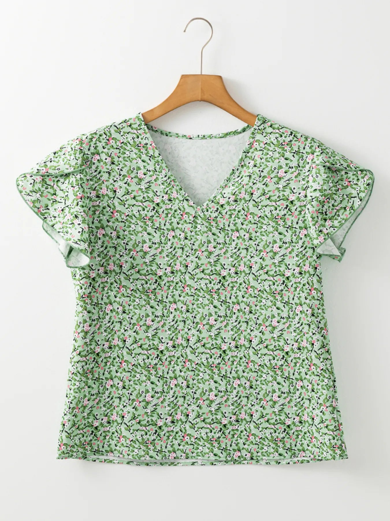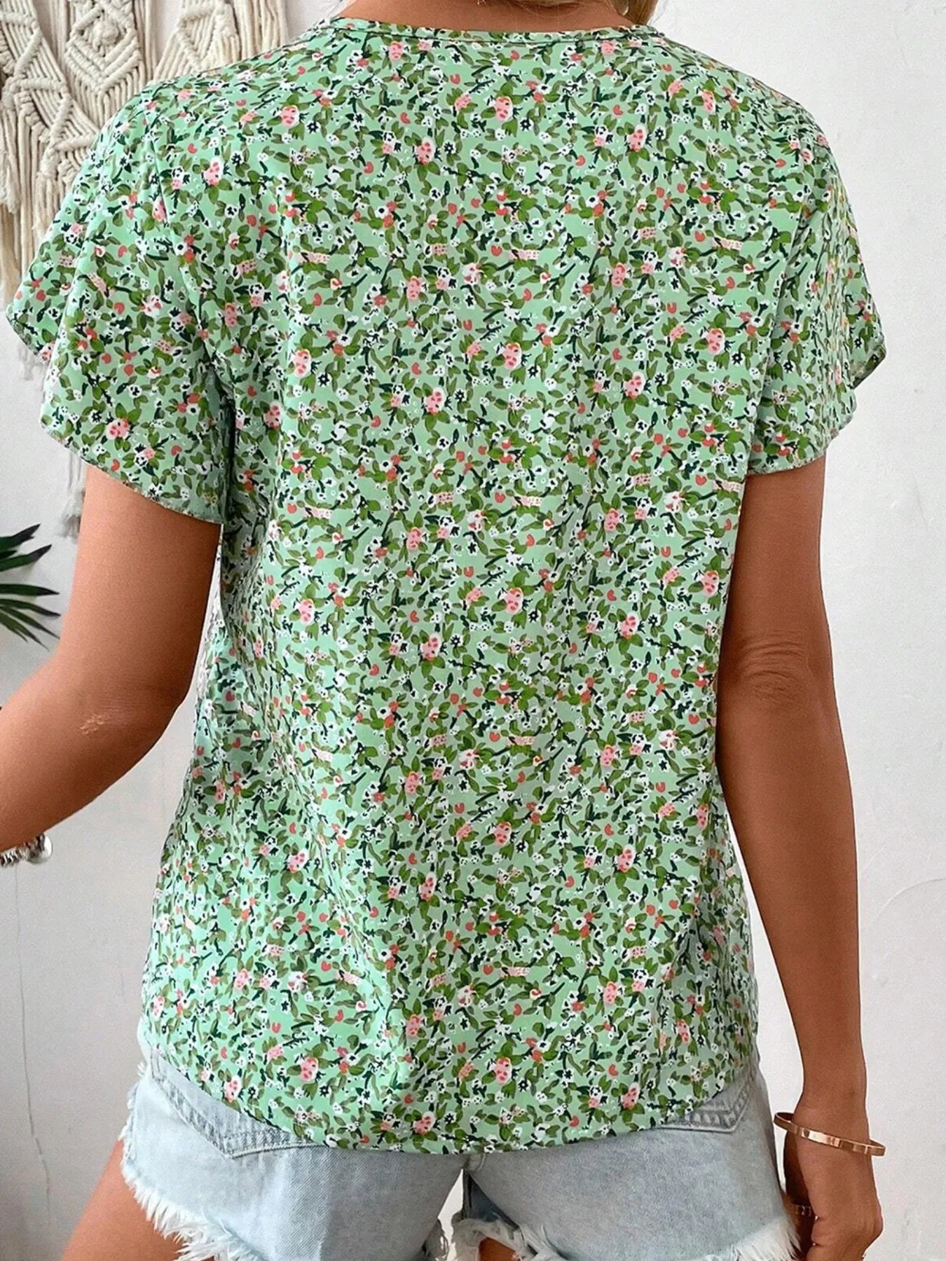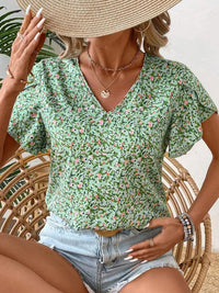 Floral Print V-Neck Short Sleeve Blouse