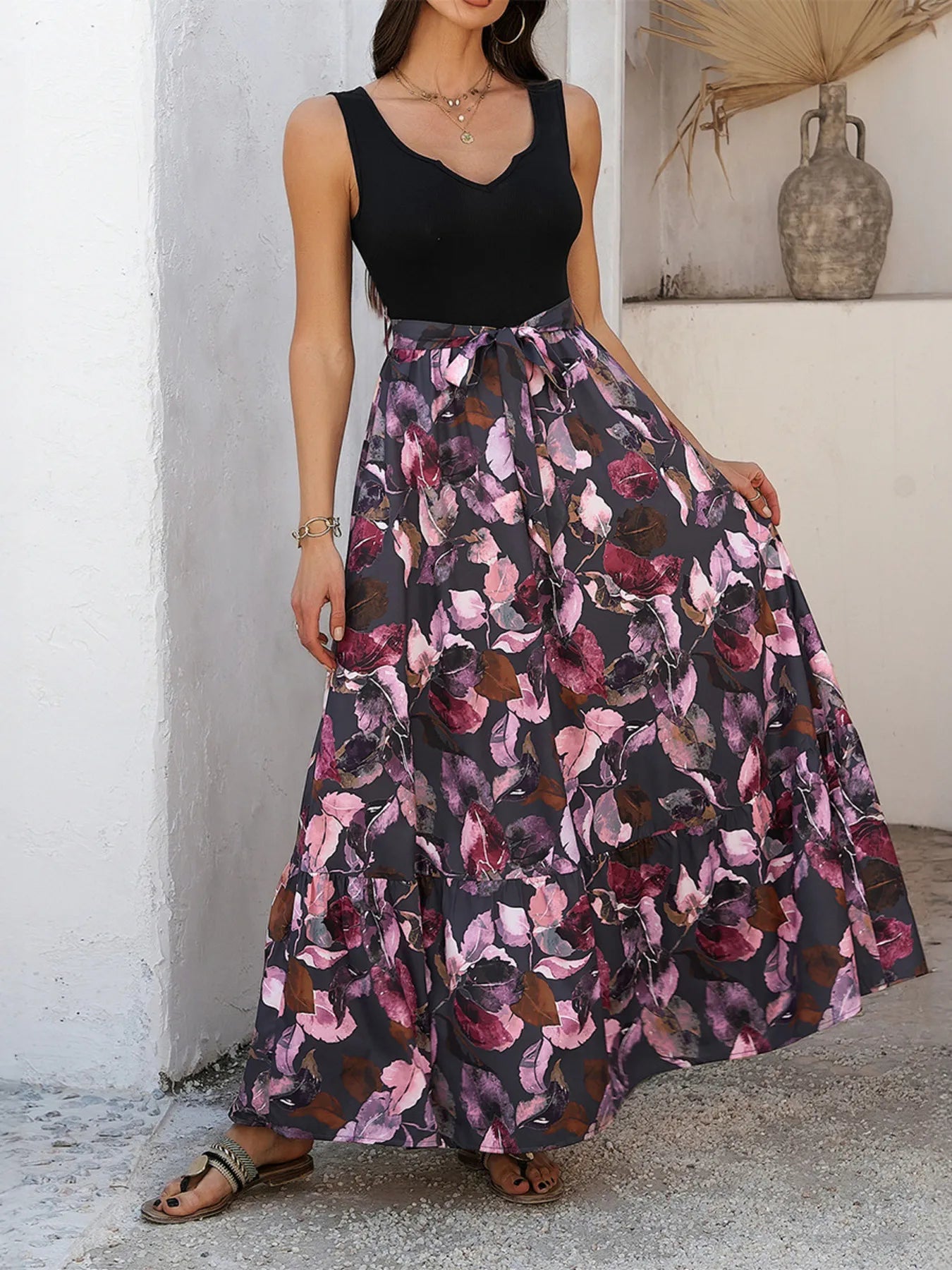 Floral Print Wide Strap Maxi Tank Dress