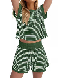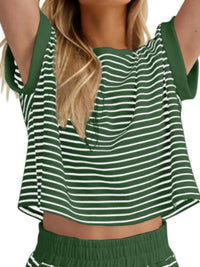 Full Size Contrast Striped T-Shirt and Shorts Set Plus Size