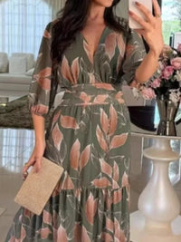Full Size Printed V-Neck Maxi Dress with Tiered Hemline Plus Size