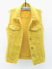 Full Size Sleeveless Frayed Denim Vest Jacket Plus Size