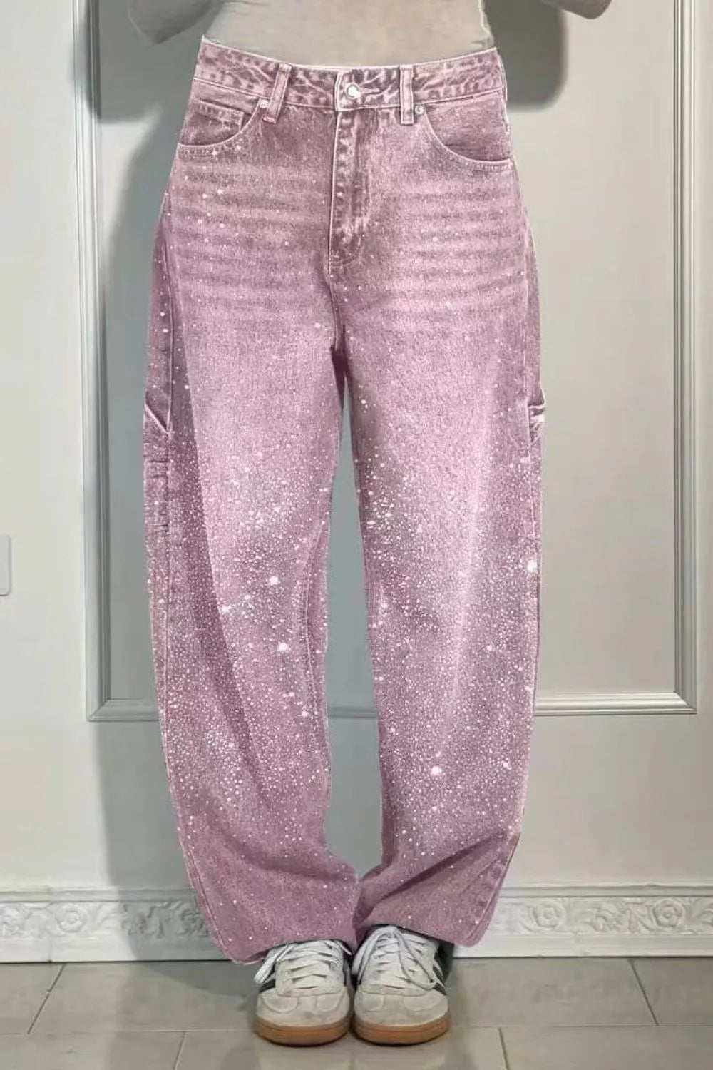 Full Size Washed Rhinestone Detail Wide leg Jeans Plus Size