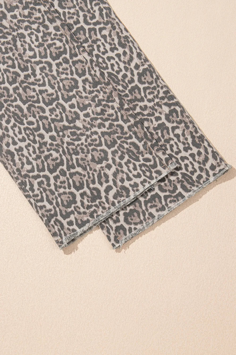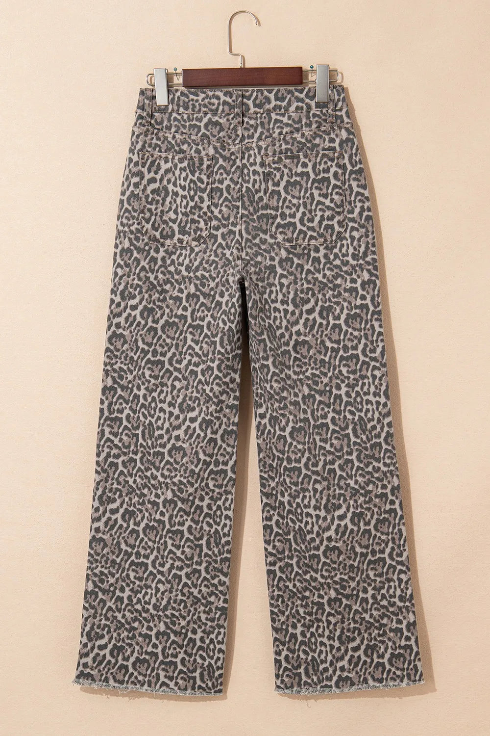 Leopard Frayed Edge Wide Leg High Waist Jeans