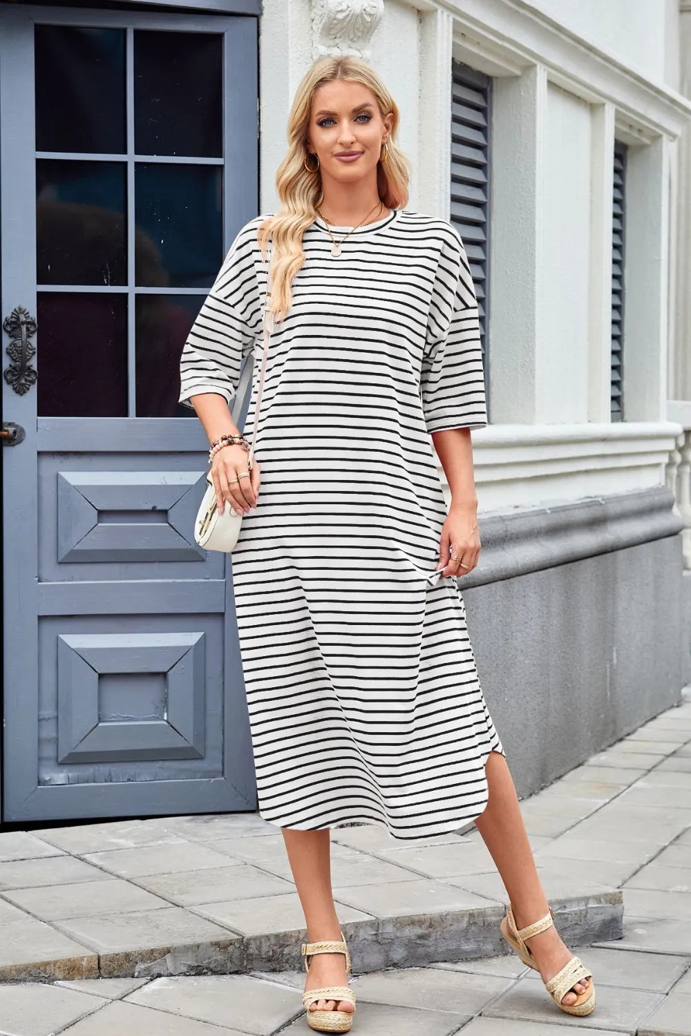 Lovelet Contrast Striped Half Sleeve Midi Tee Dress