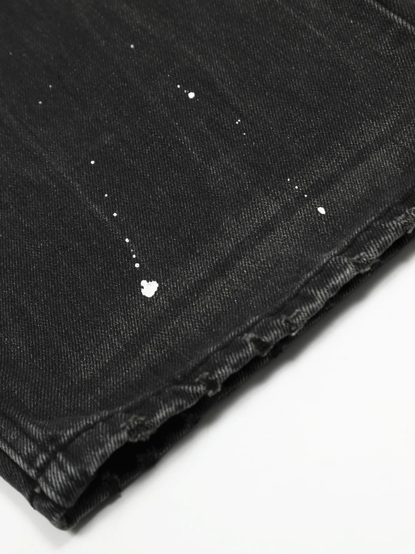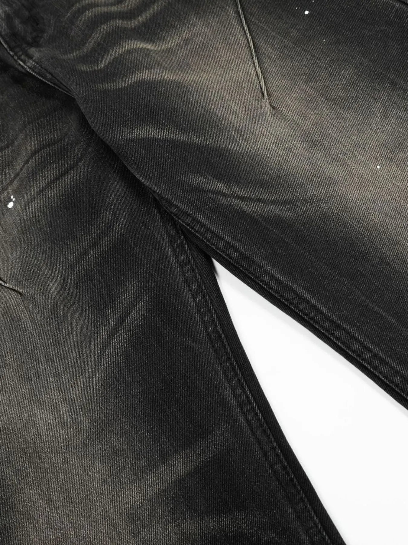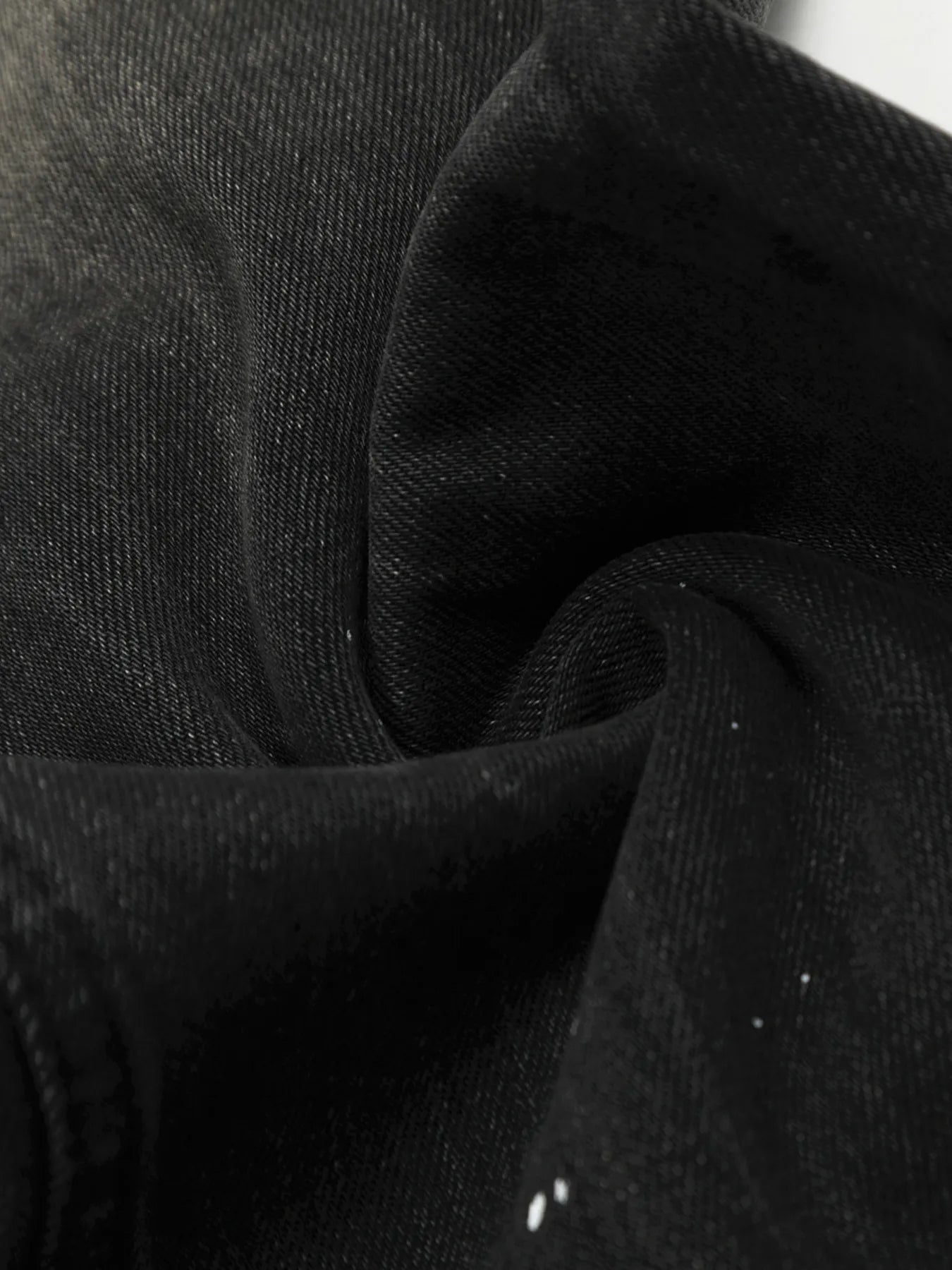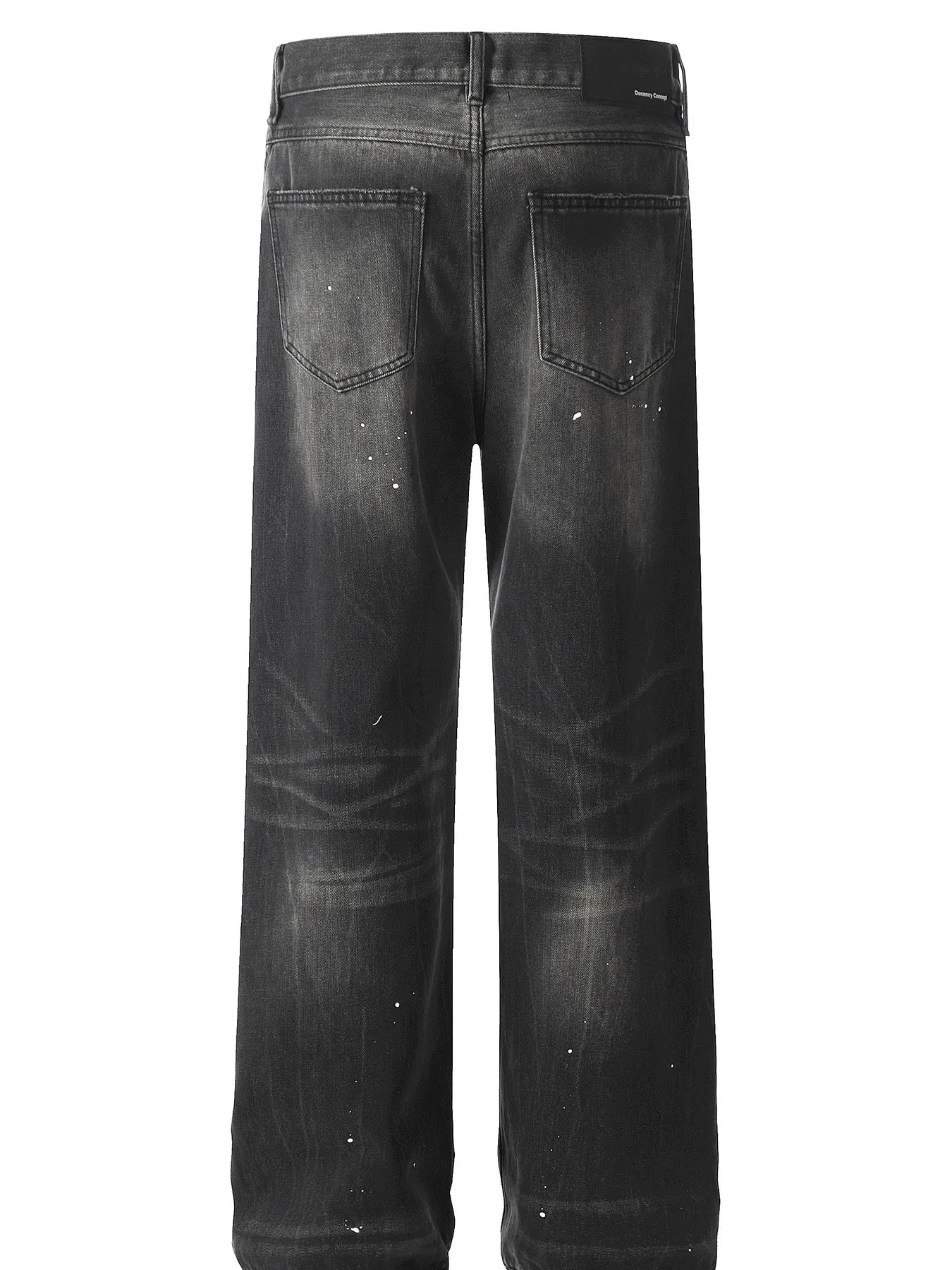 Men's Baggy Straight Leg Jeans with Paint Splatter Details