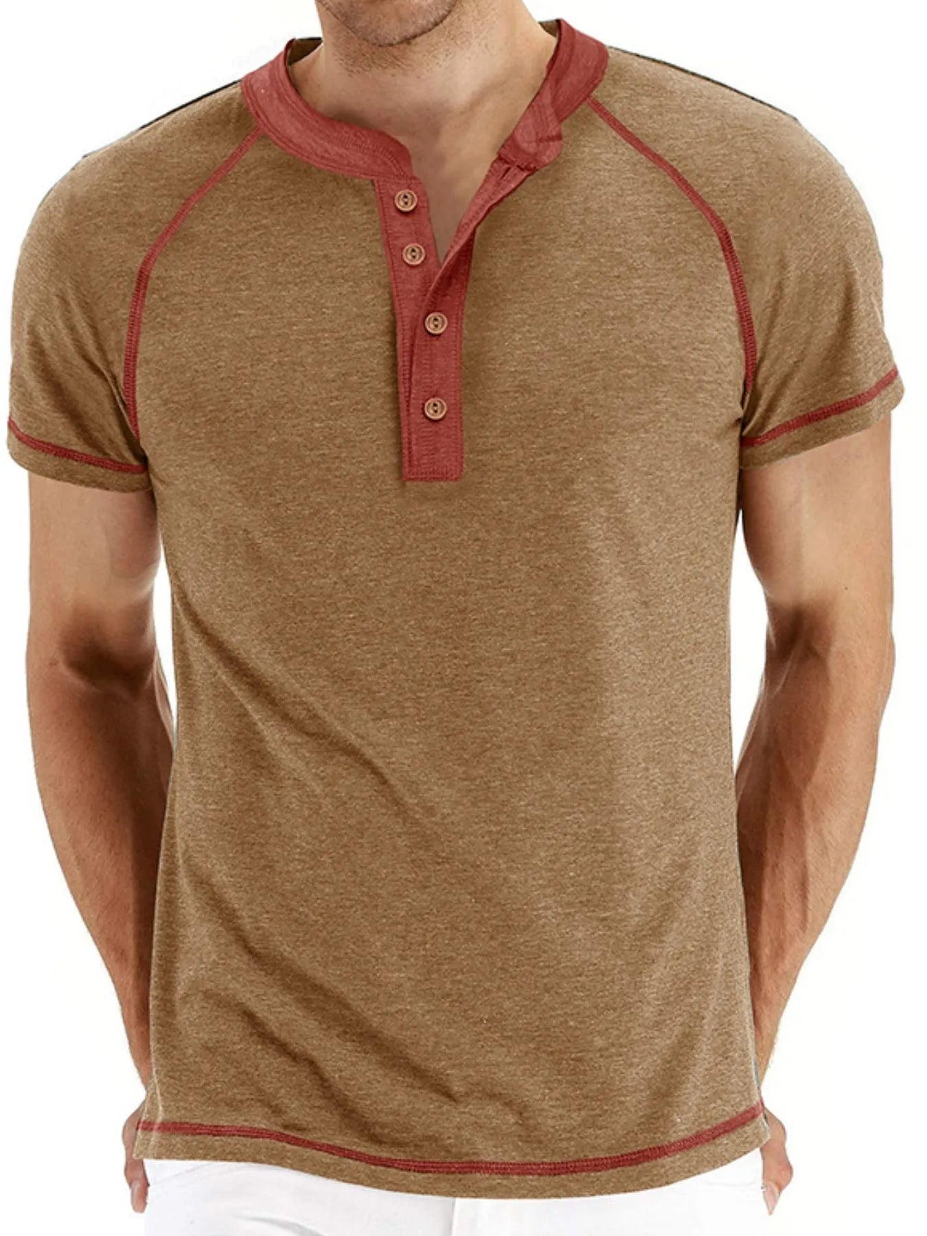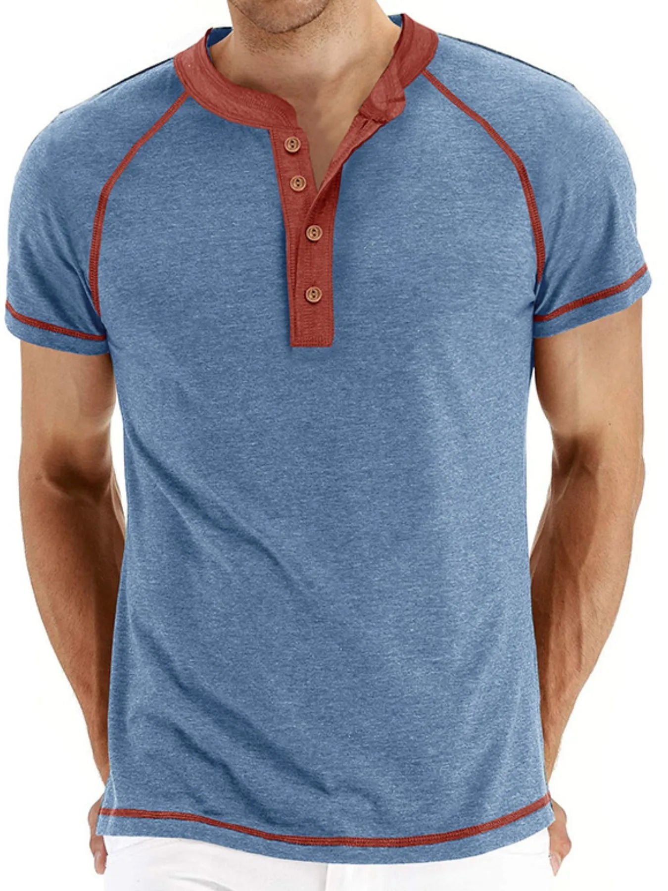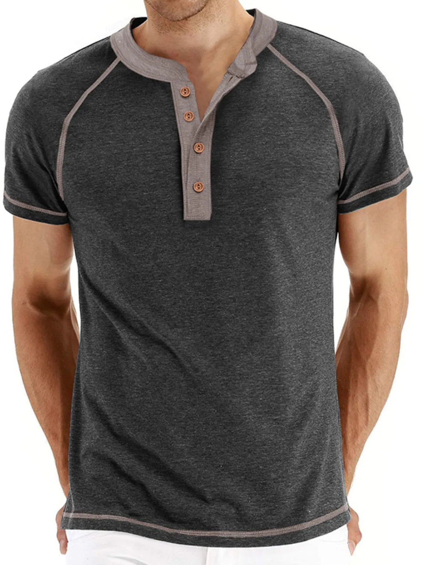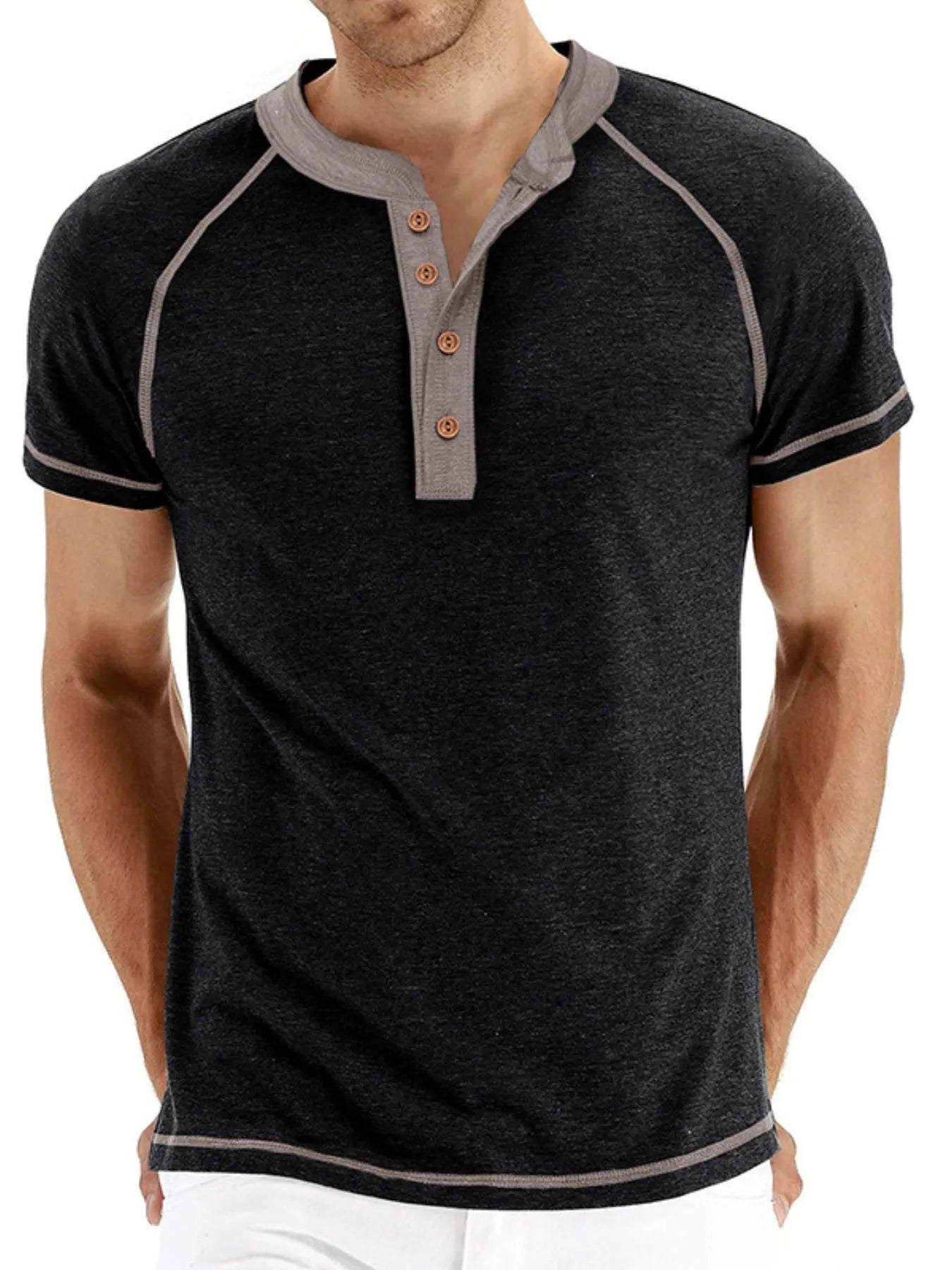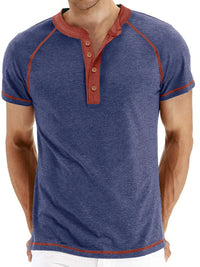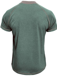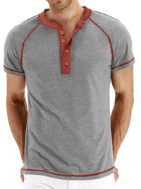 Men's Casual Henley Polo T-Shirt with Contrast Stitching