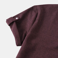 Men's Casual Linen Blend Mandarin Collar Short Sleeve Henley Shirt