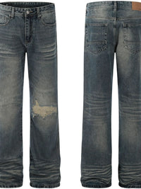 Men's Cat's whisker Washed Distressed Straight Jeans