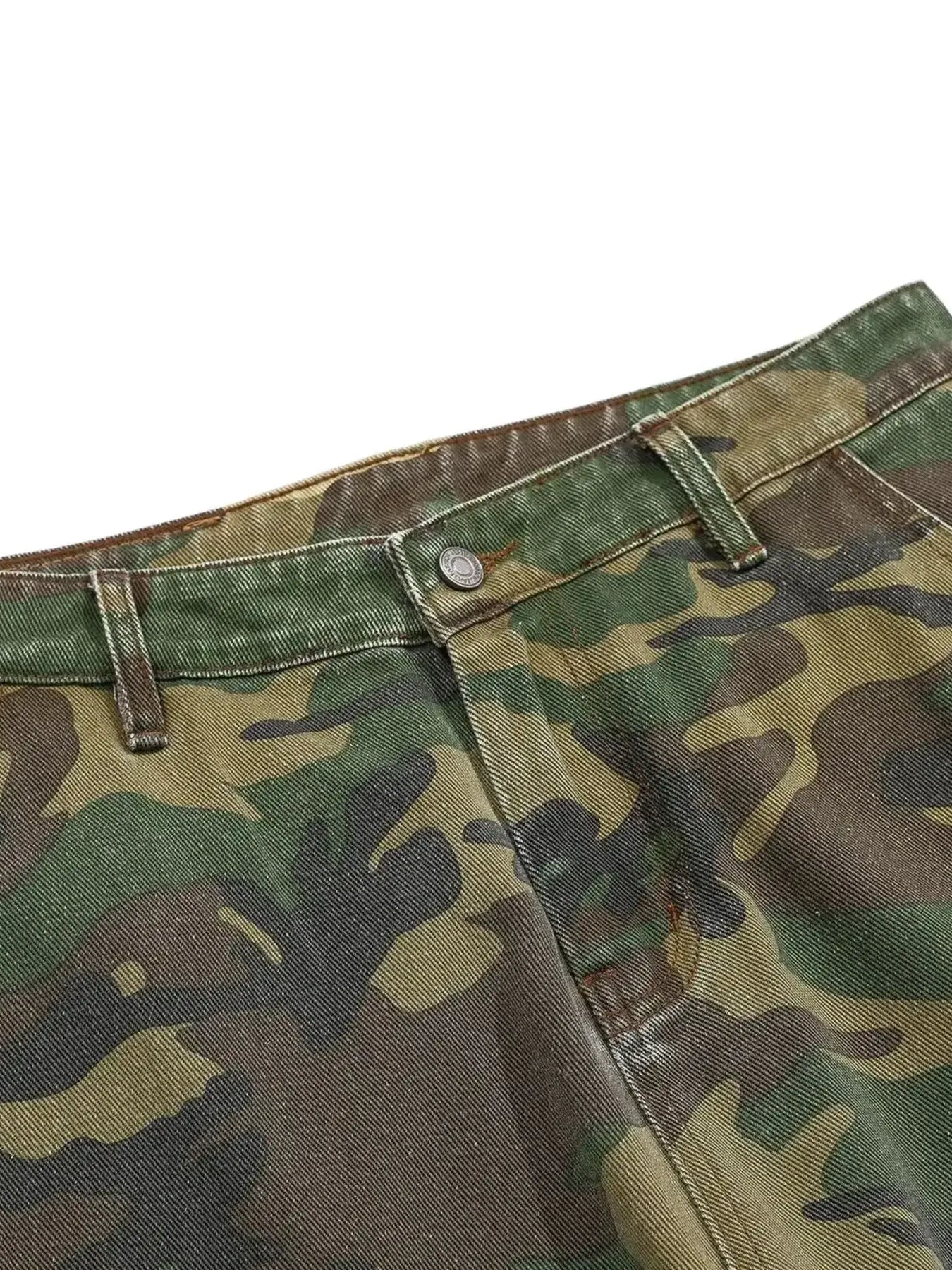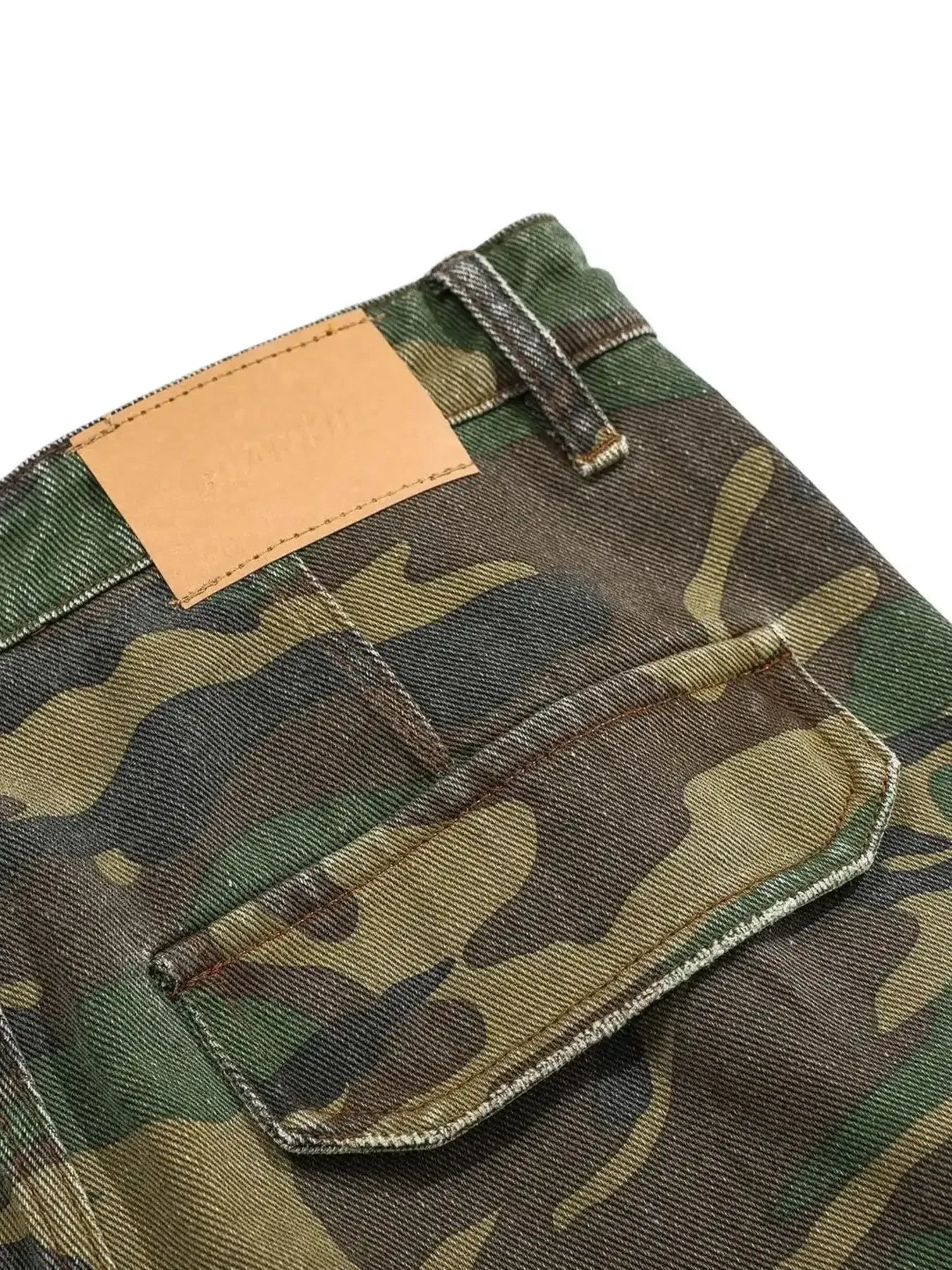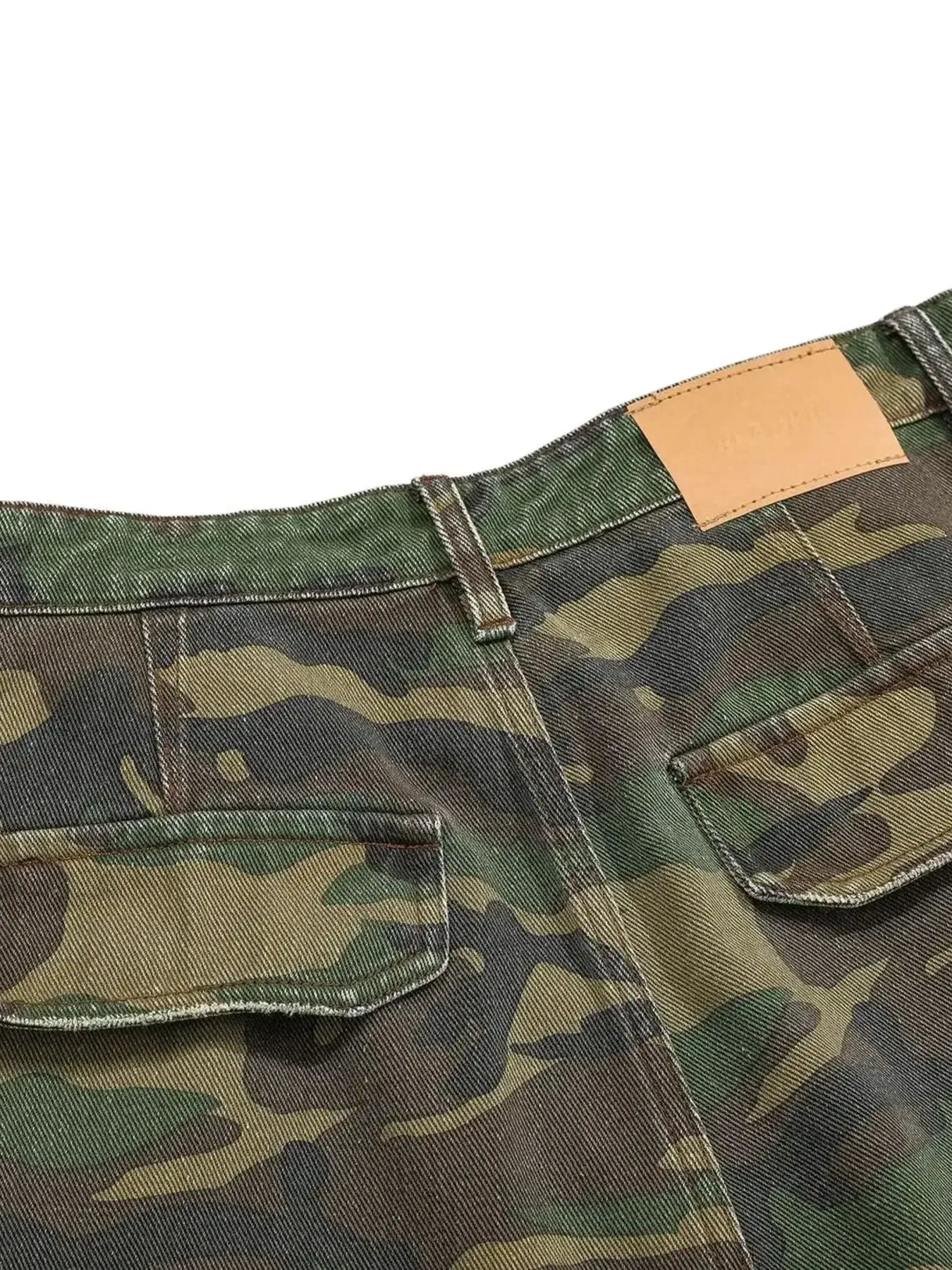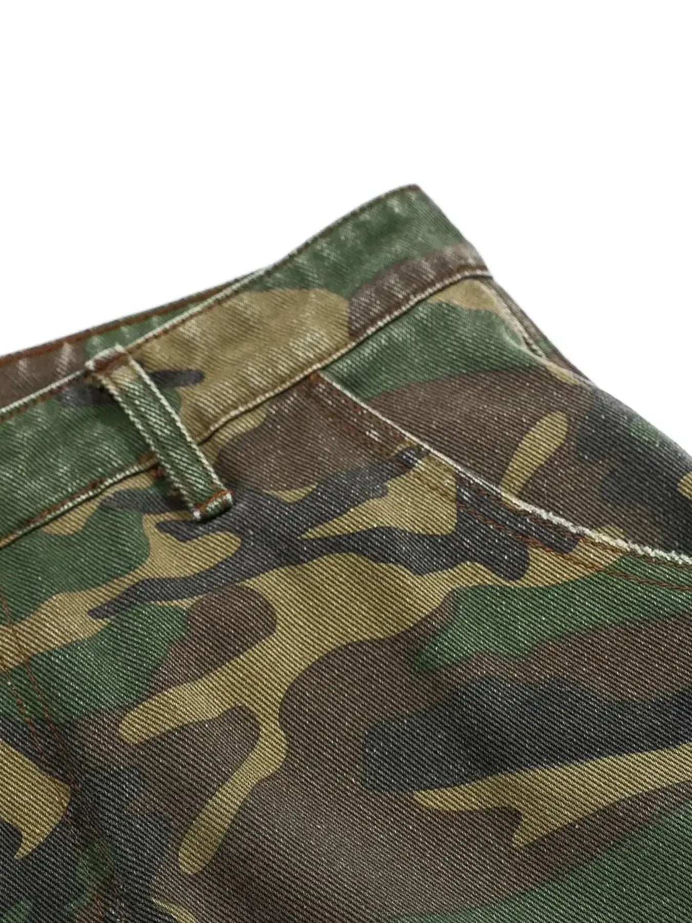 Men's Distressed Camouflage Cargo Pants with Multiple Pockets