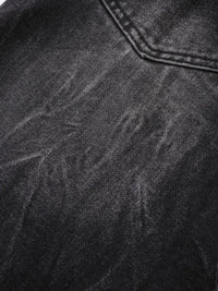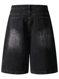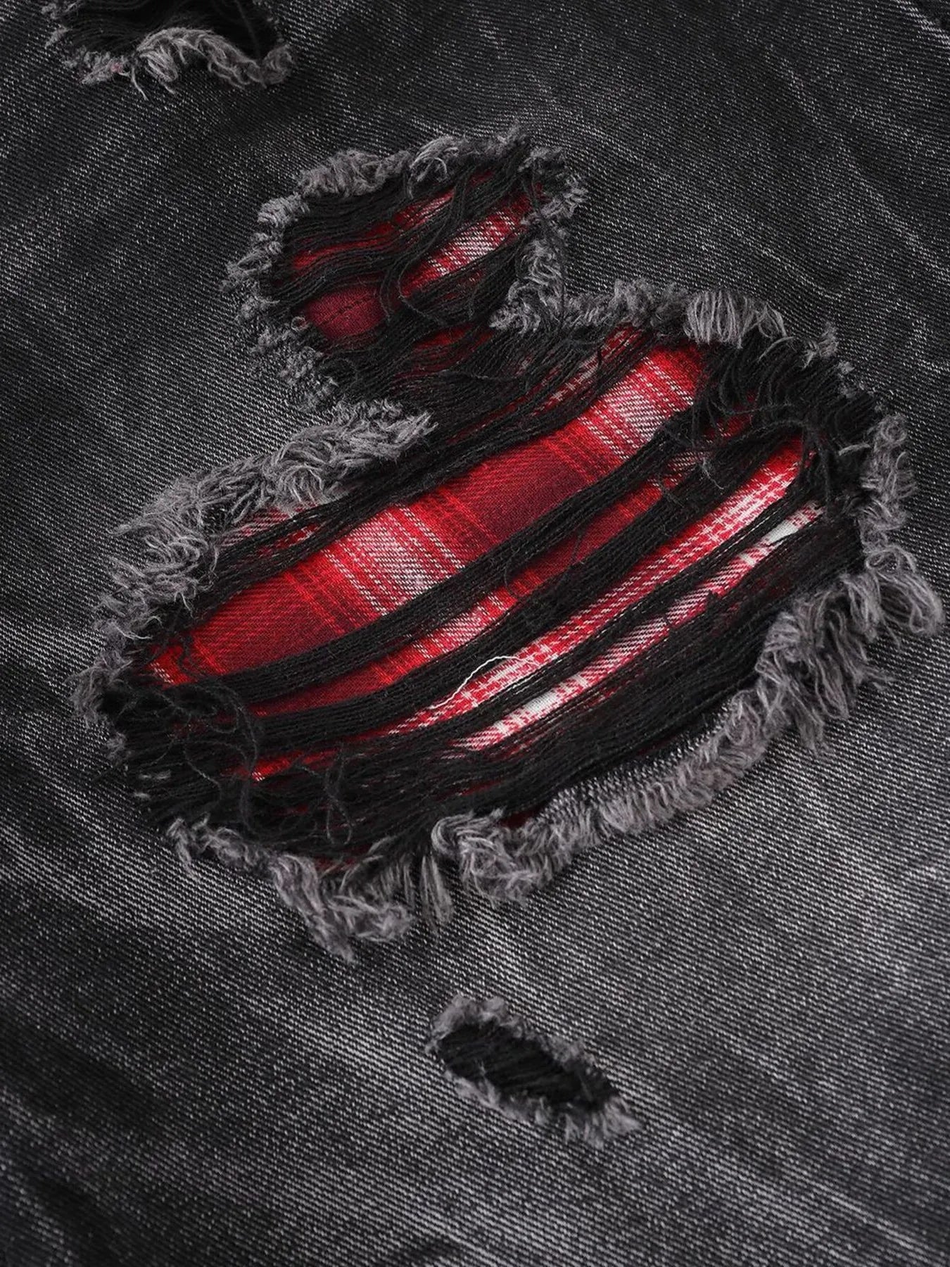 Men's Distressed Denim Shorts with Plaid Patches
