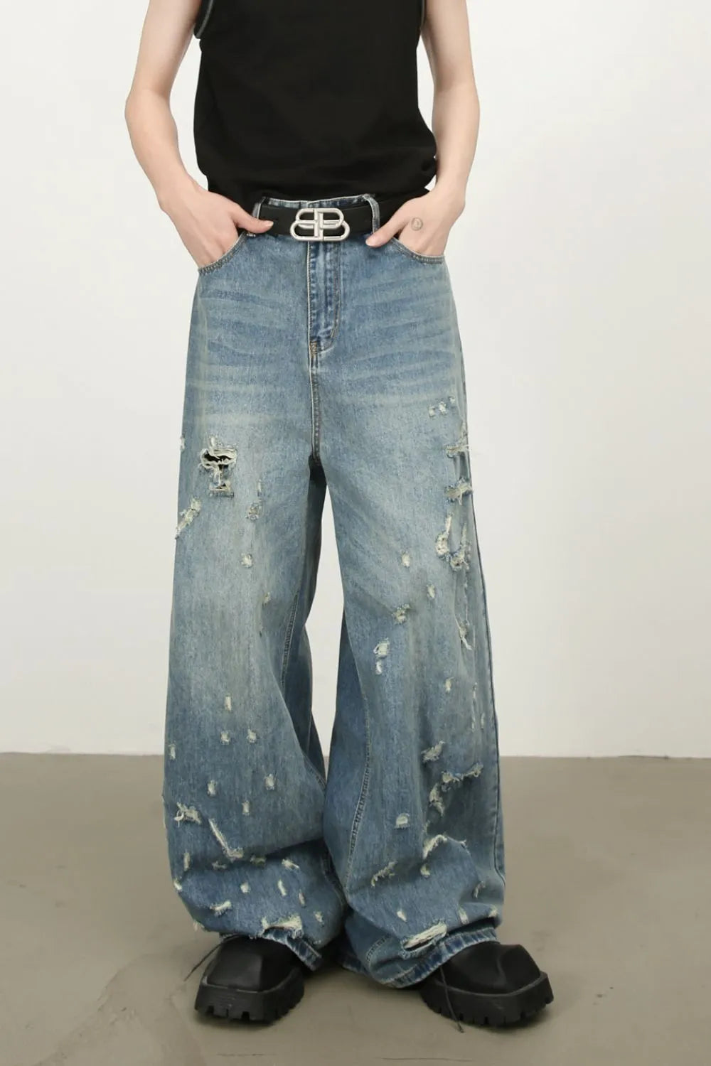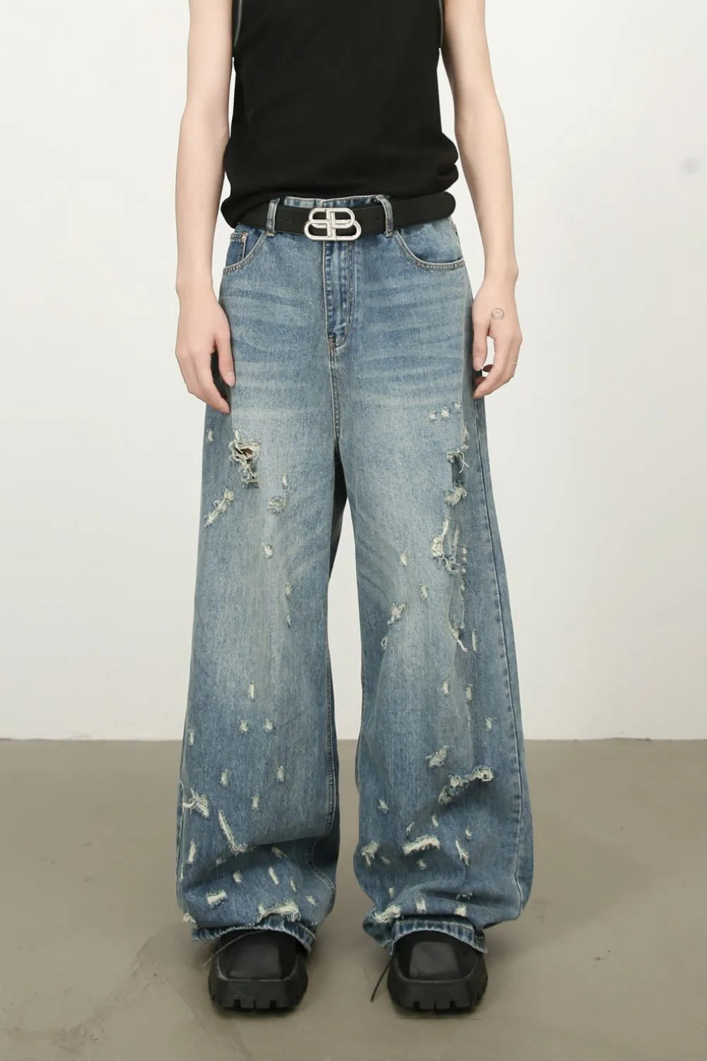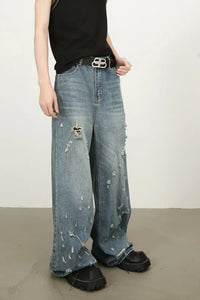 Men's Distressed Wide Leg Jeans
