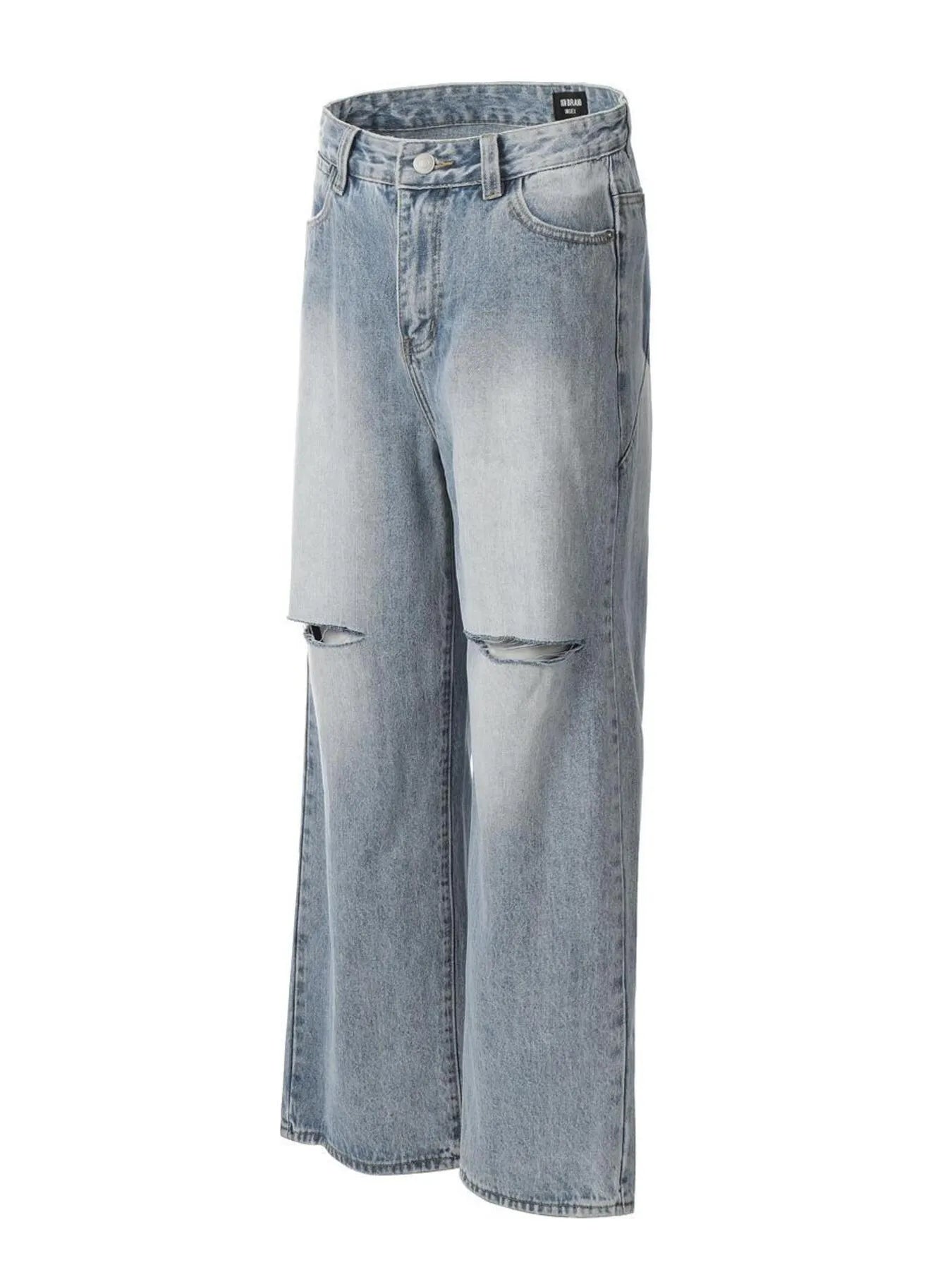 Men's Distressed Wide Leg Wash Jeans