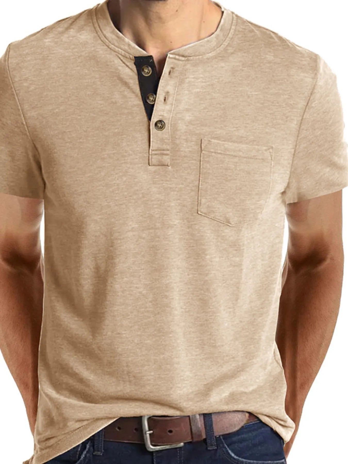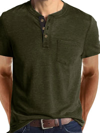 Men's Full Size Classic Henley Pocket Polo T-Shirt Plus Size