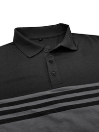 Men's Full Size Color Block Striped Polo Shirt Plus Size