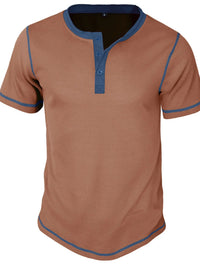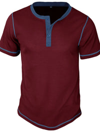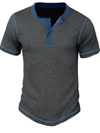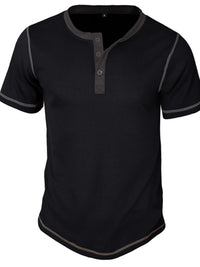 Men's Full Size Contrast Stitch Henley Polo Shirt Plus Size