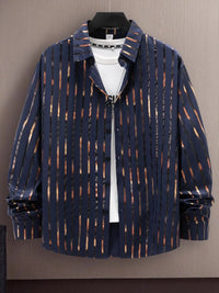 Men's Full Size Striped Button Up Long Sleeve Shirt Plus Size