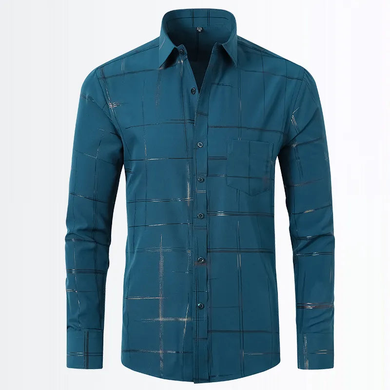 Men's Geometric Pattern Long Sleeve Button-Down Shirt