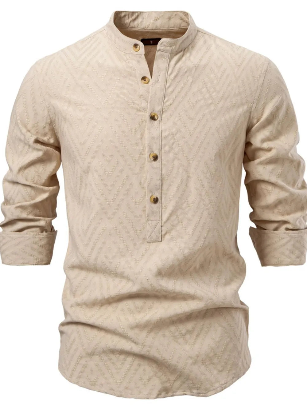 Men's Half Button Geometric Texture Collared Neck Shirt