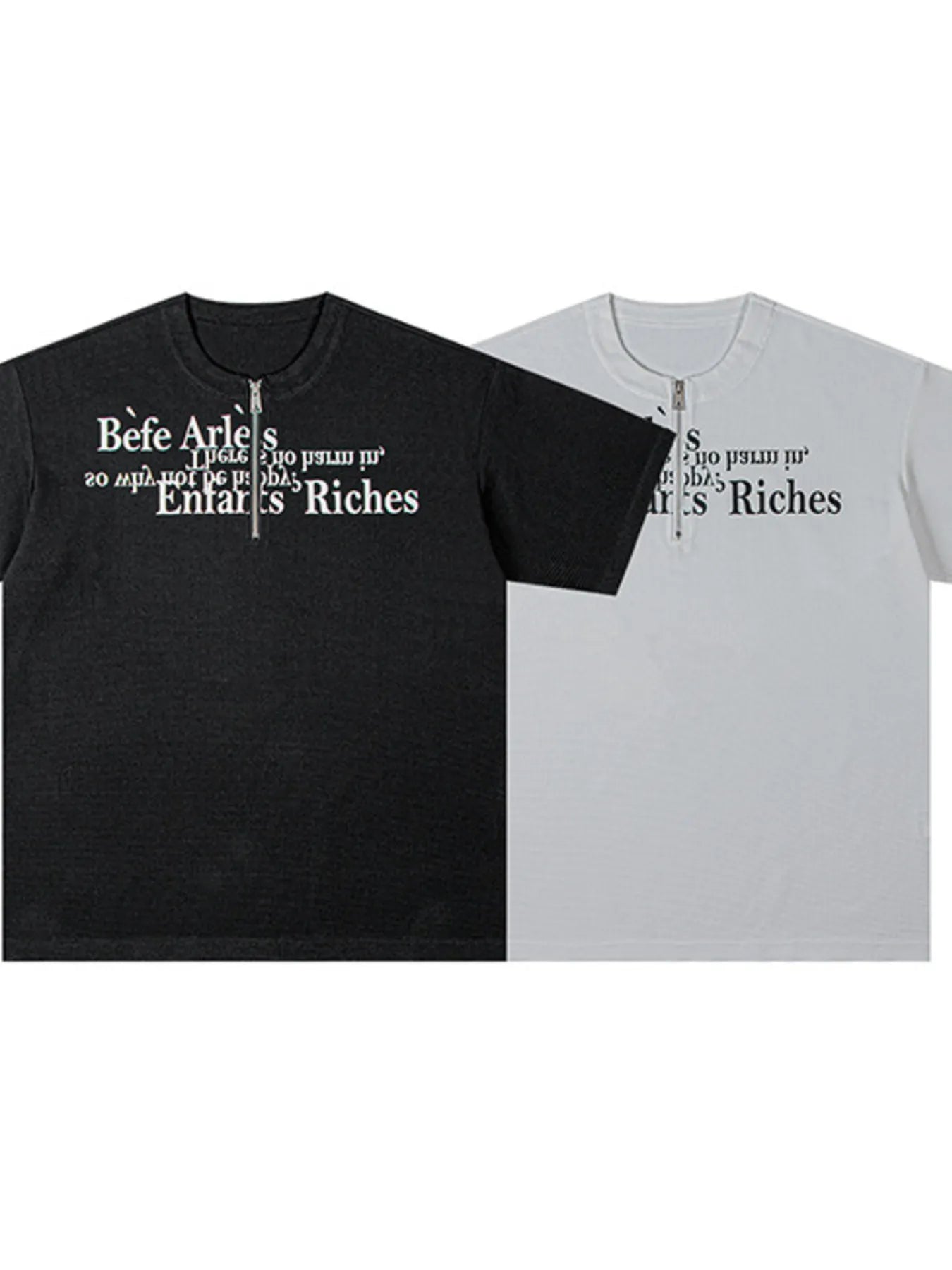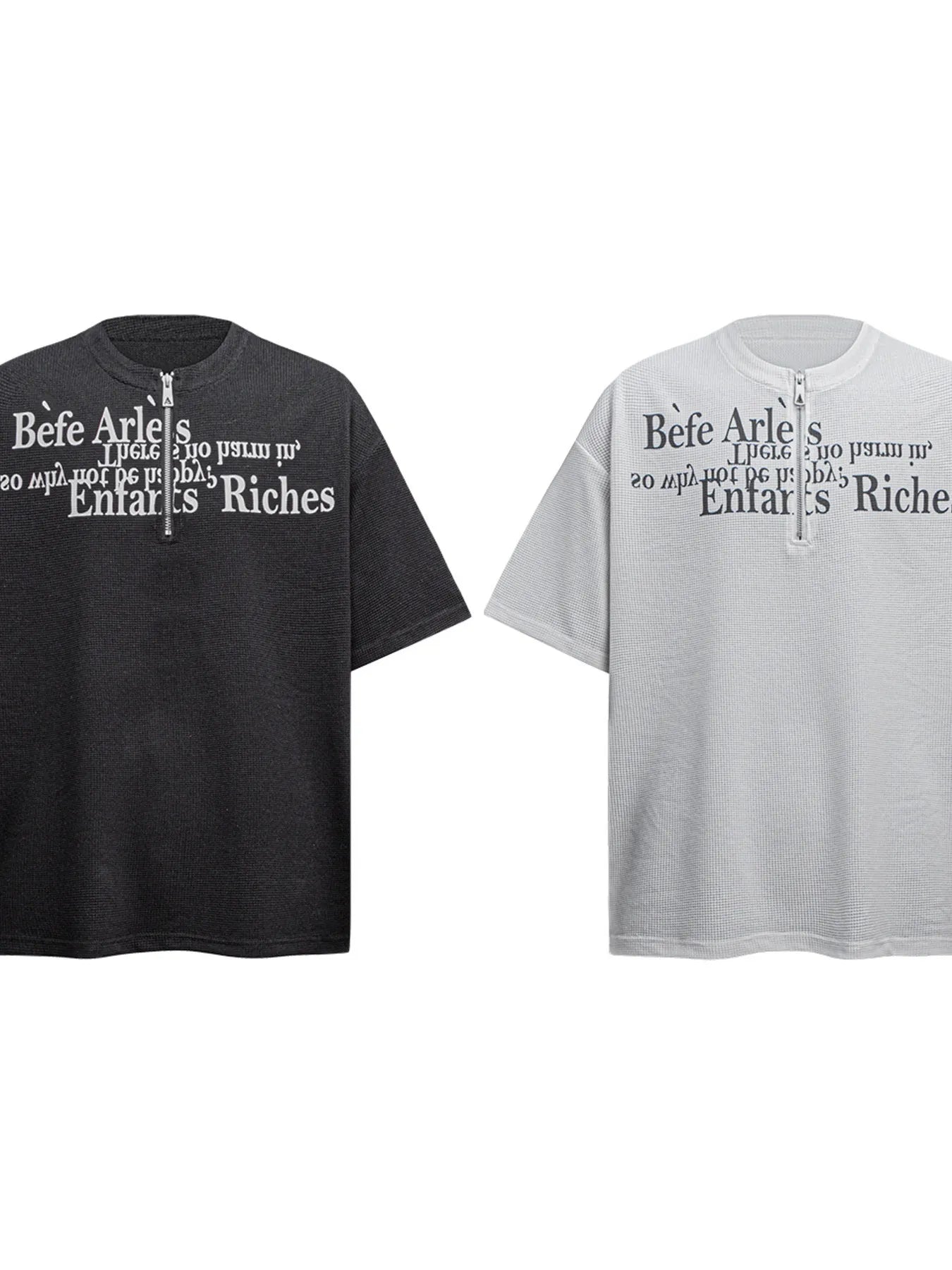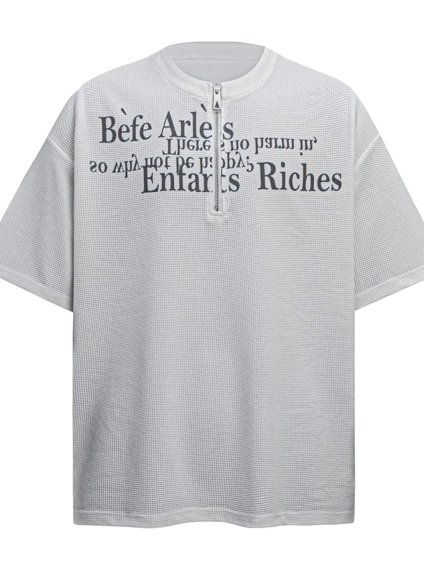 Men's Letter Quarter Zip Short Sleeve T-Shirt