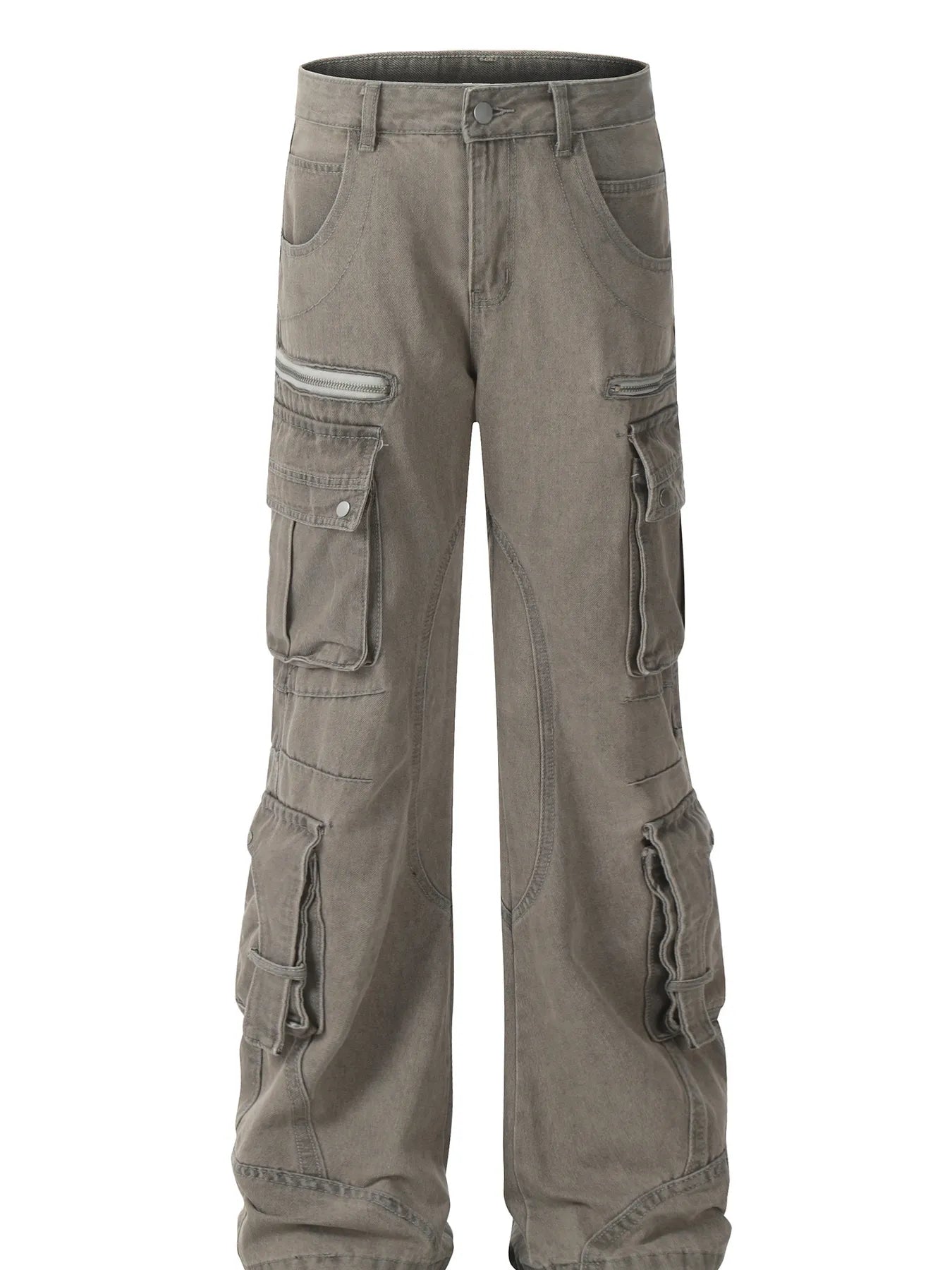 Men's Multi-Pocket Cargo Wide Leg Jeans