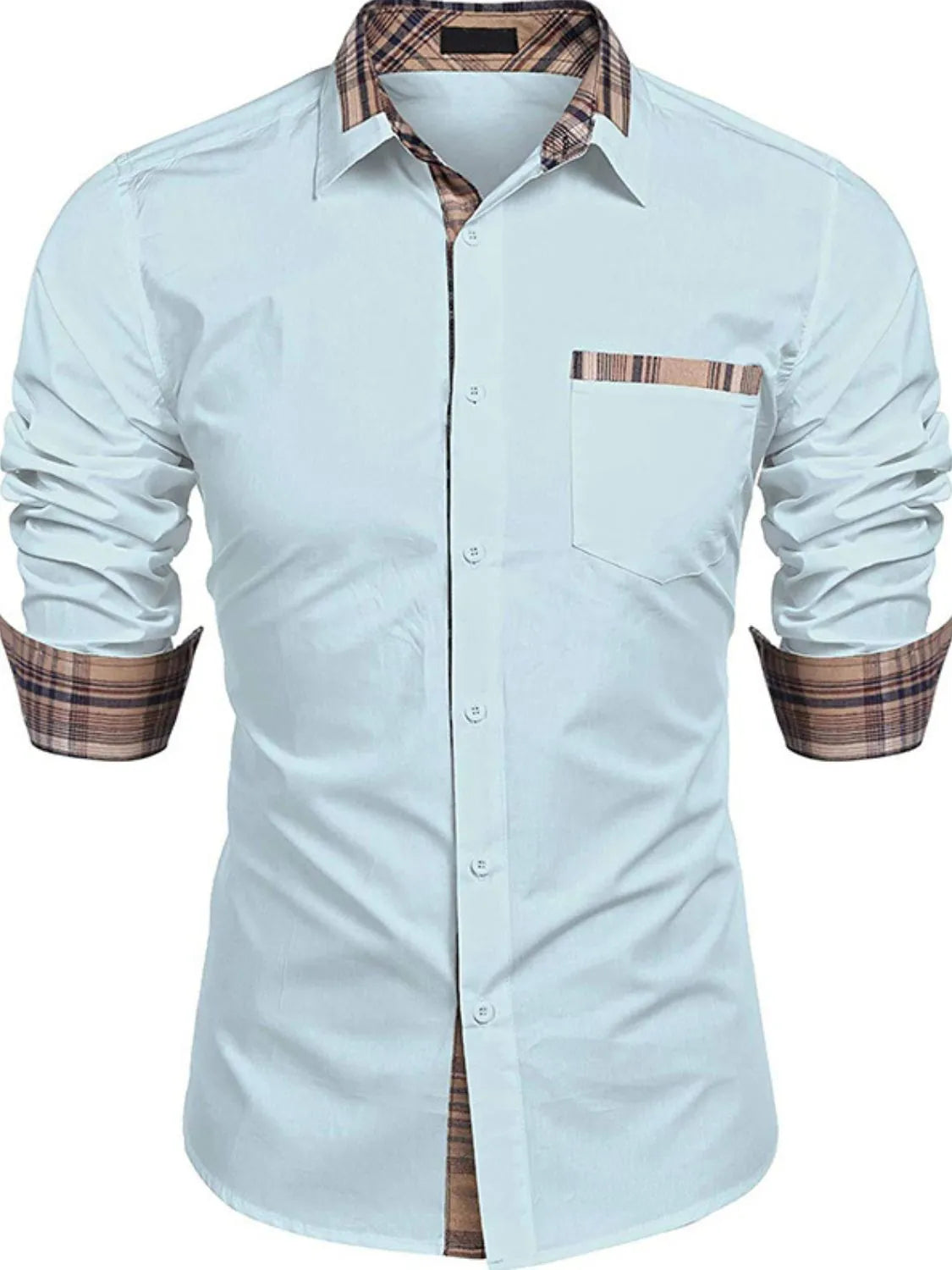 Men's Plaid Collared Neck Long Sleeve Shirt