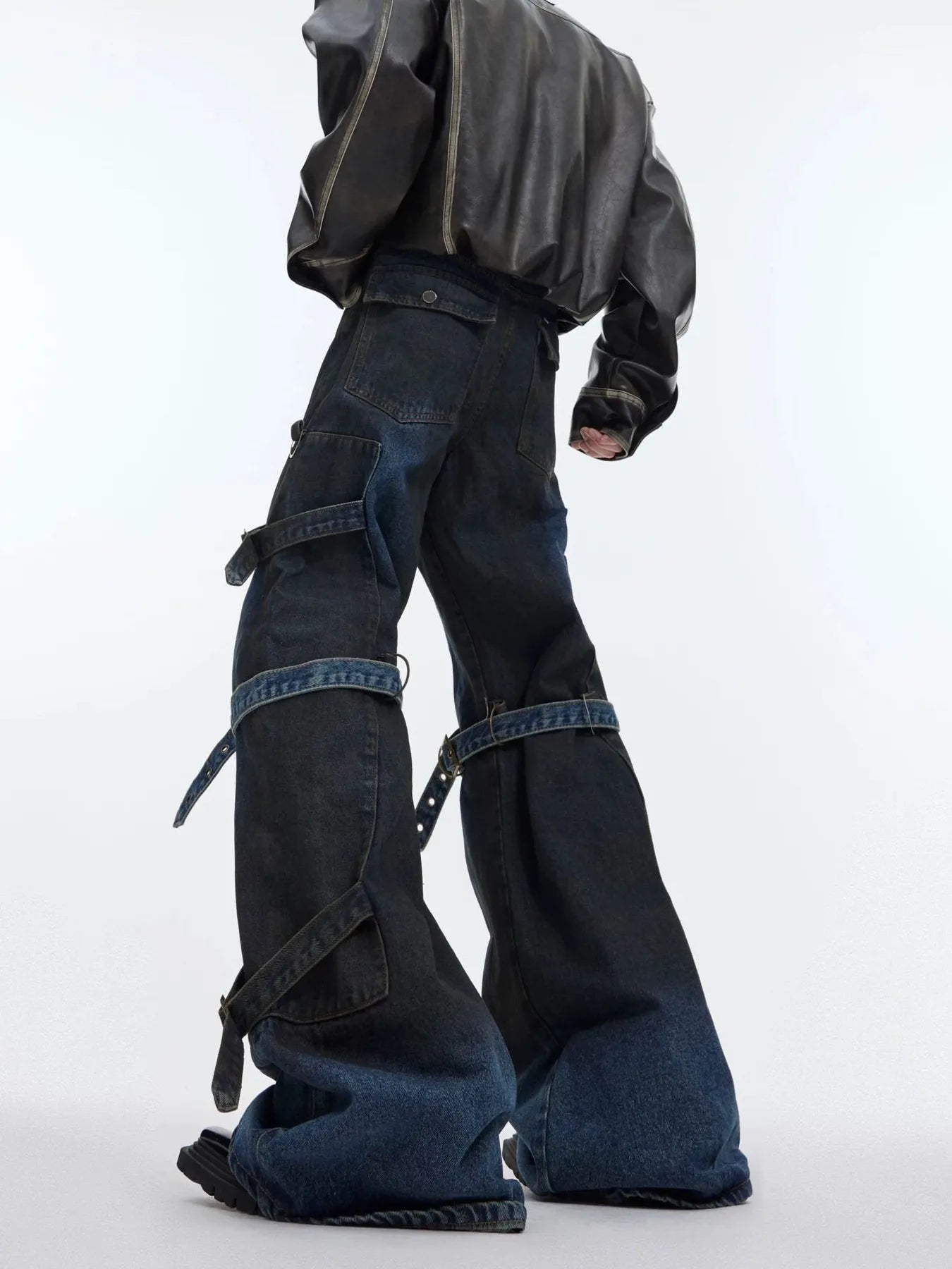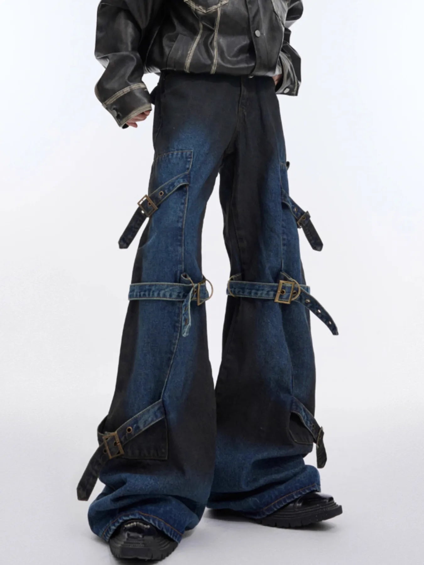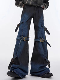 Men's Plus Size Buckle Strap Washed Flare Jeans