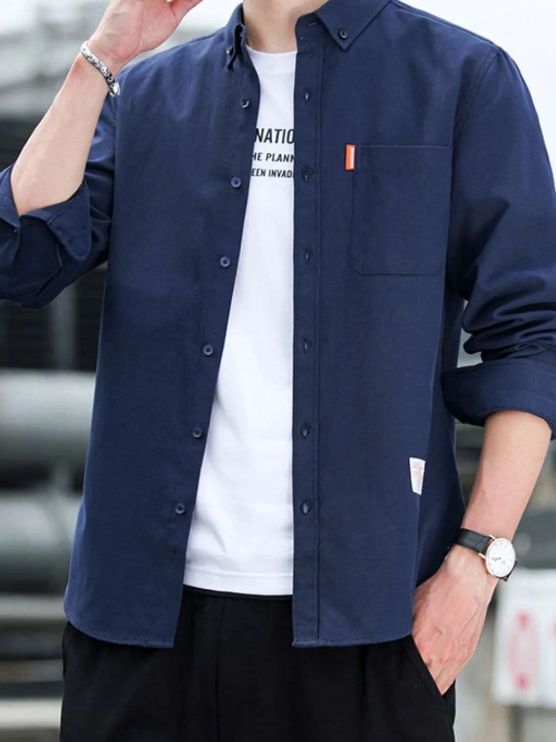 Men's Plus Size Button Down Shirt with Chest Pocket
