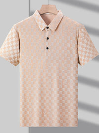 Men's Plus Size Checkered Pattern Short Sleeve Casual Polo Shirt