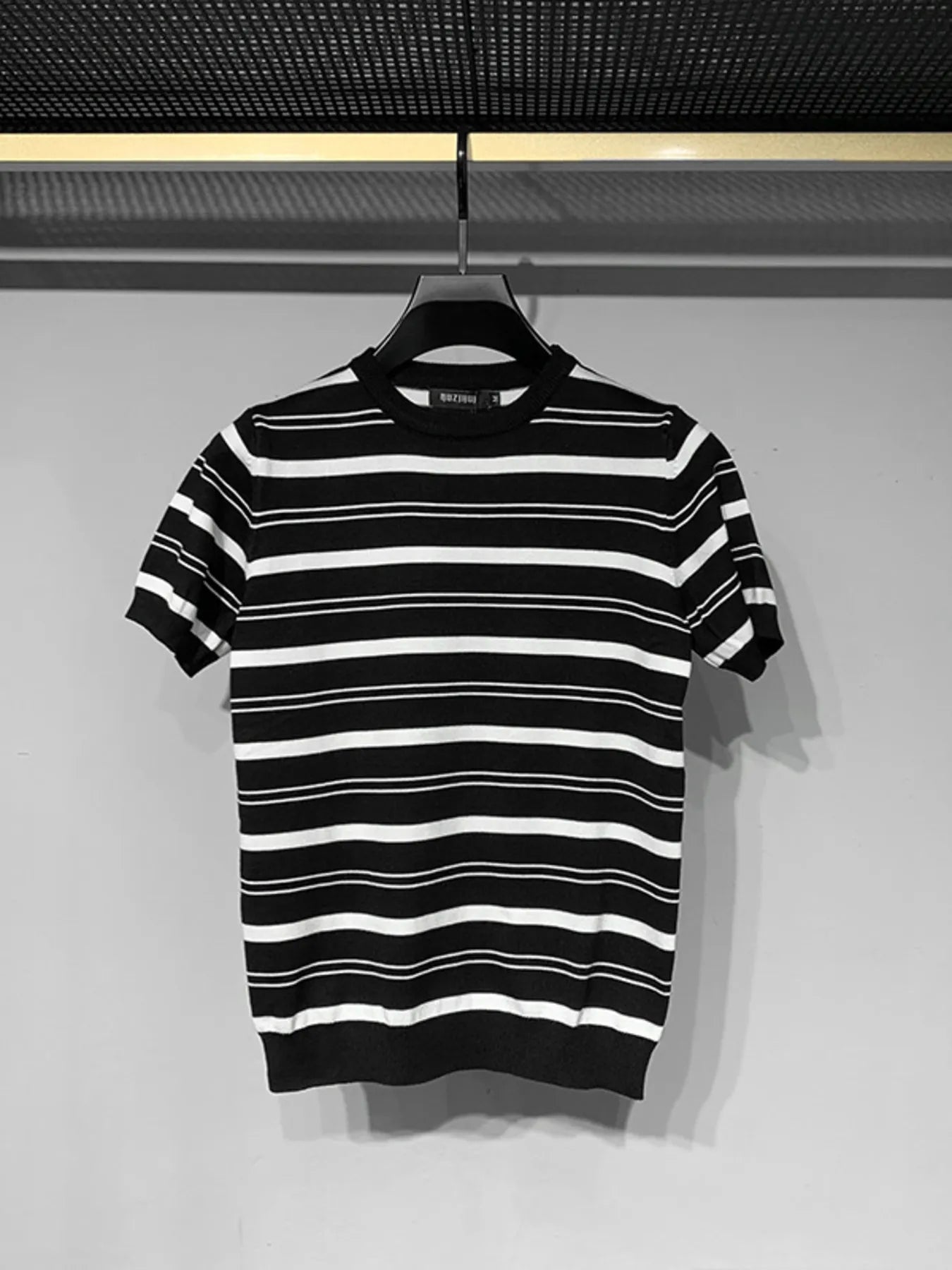 Men's Plus Size Classic Striped Short Sleeve Knit T-Shirt