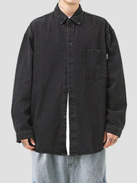 Men's Plus Size Collared Neck Long Sleeve Denim Shirt