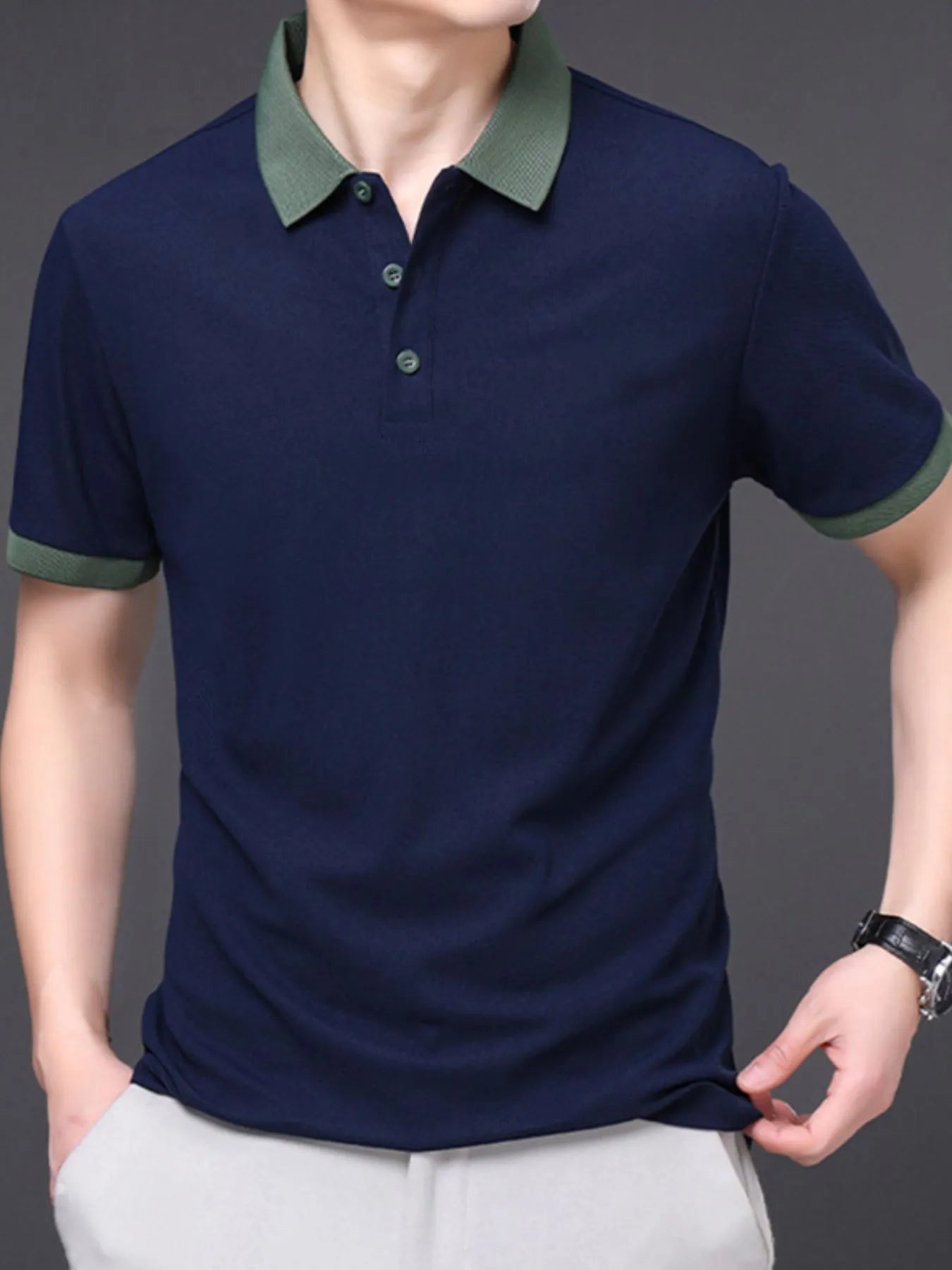 Men's Plus Size Contrast Collar Short Sleeve Polo Shirt